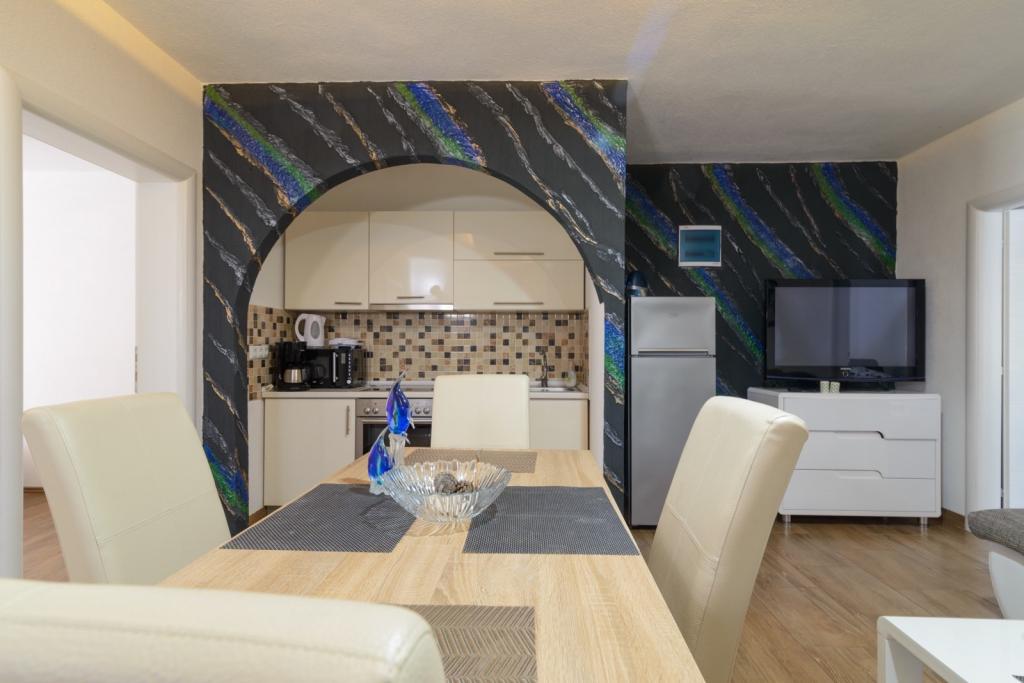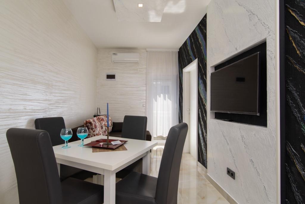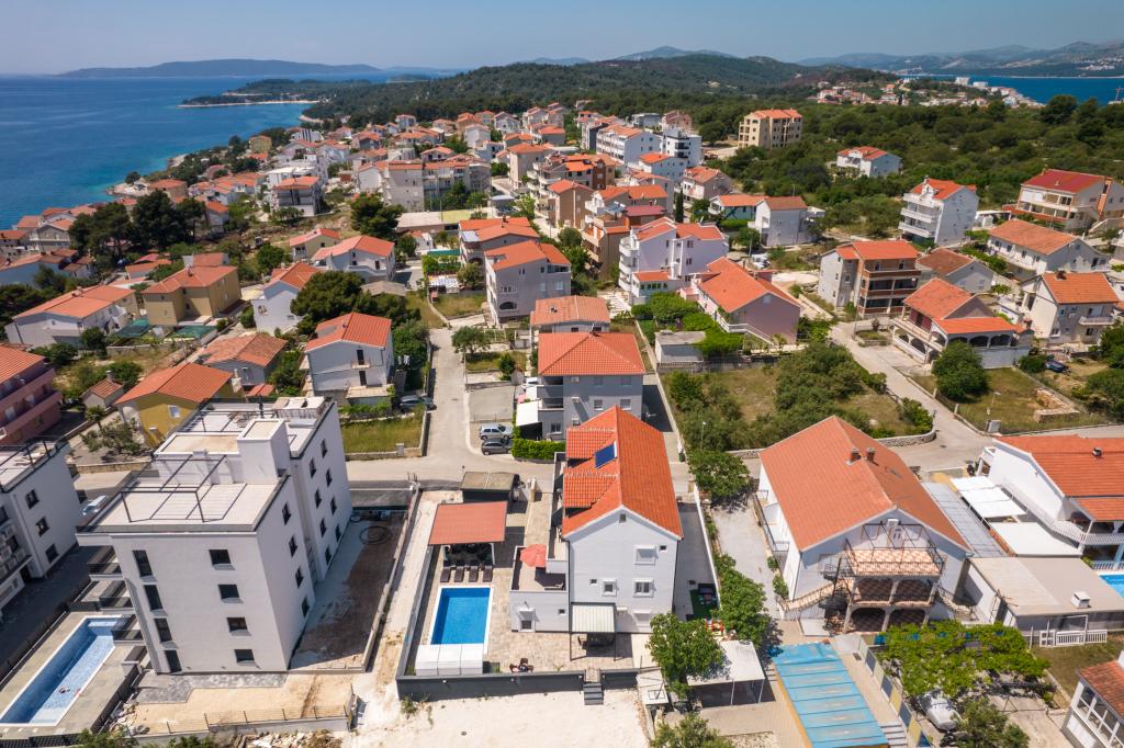 Lejlighederne ligger i det nyindrettede Villi ET A i byen Okrug Gornji på øen Ciovo, der er forbundet med den historiske by Trogir. Helt og nyindrettede lejligheder i den smukke del af Ciovo Island. Kun 70m væk fra havet. Foran lejligheden er der en swimmingpool og en stor grill. Lejlighederne indeholder alt hvad du behøver for en familieferie med børn eller venner. Villaen blev bygget i 2017 og indeholder syv lejligheder, alle moderne og tilpasset turisme. Ejendommen ligger 10 minutters gang fra centrum af byen, hvor du kan finde: ambulance, apotek, post, forskellige mærker, drikkevarer med friskvarer, en række restauranter og caféer og den berømte strand Copacabana. Og kun 3, 5 km fra centrum af Trogir kan du køre bil, bus eller båd. Vi ønsker alle gæster en velkommen og behagelig sommer.