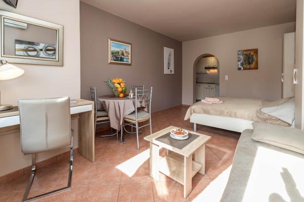 Vi er kommet her med vores venner i årevis. Vi er altid særligt begejstrede for den store overdækkede terrasse, hvor du kan lade aftenen forsvinde. Du kan endda se lidt af havet og nyde de sidste solstråler.Terrassen er omgivet af oleandere og palmer. Der er en skildpadde indhegning på siden. Dyrene lever her naturligt og lægger også æg, som unger klækkes fra. Meget er blevet fornyet på det seneste, så komforten også er øget Den tysktalende familie er meget høflig og hjælpsom med problemer (sundhed) Der er bilpladser til rådighed. . Stranden, restauranter og den maleriske landsby med et marked er inden for gåafstand. I de senere år er der også lavet en separat hundestrand, som er meget populær.