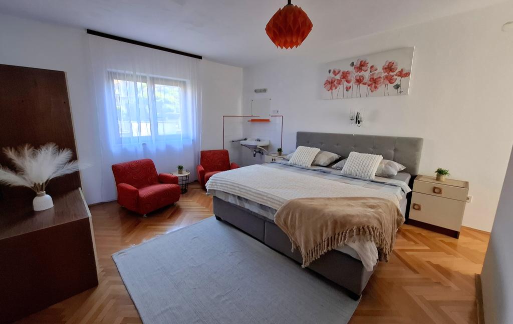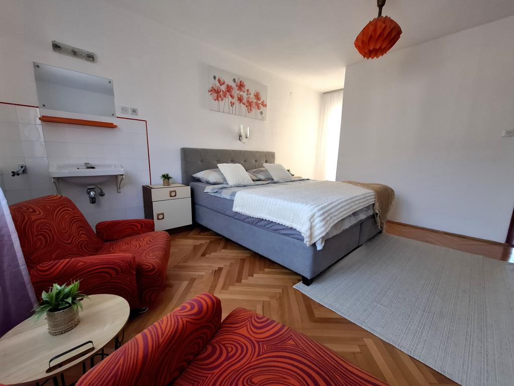 Apartments Sun & Sea Izabela ligger på anden sal i et hus i centrum af Crikvenica. Boligen ligger kun få minutters gang fra byens centrum og byens strand. Lejlighederne er udstyret med aircondition, internet (Wi-Fi), privat parkering, tv, og alt er inkluderet i prisen.