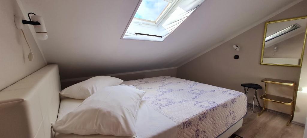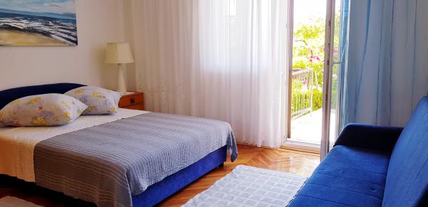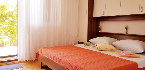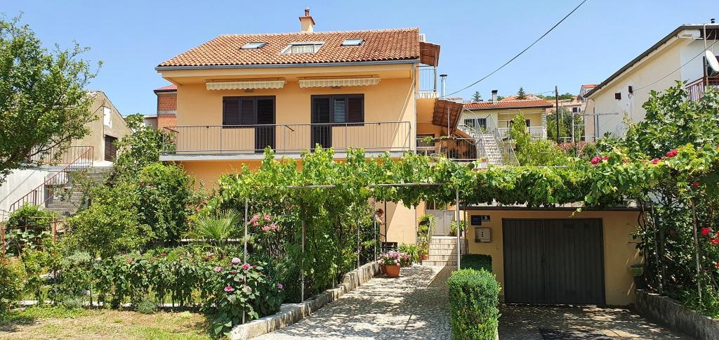 I familiehuset Jela råder du over to rummelige lejligheder og et komfortabelt værelse med eget badeværelse. Omkring 600 m fra havet ligger huset Jela i en rolig del af byen med en smuk udsigt over havet og øen Krk. I sommermånederne er det bedst at efterlade bilen på en af de flere parkeringspladser i haven og gå ubekymret til den nærmeste strand eller byens centrum (10-15 minutters gang). Hvis du ikke har lyst til at gå, vil bybussen, der kører forbi vores anlæg, forkorte den rejse markant. Lejlighederne og værelserne er udstyret med aircondition, satellit-tv, WLAN internet, badeværelser med bruser, rummelige terrasser eller balkoner med havudsigt udstyret med siddemøbler. Der er et minikøleskab og en kedel på værelset, mens køkkenerne i lejlighederne er udstyret med mikroovn, køleskabe, ovne og alt, hvad der er nødvendigt for at tilberede og servere måltider. Indtjekning fra kl. 13.00 og udtjekning til kl. 09.00 om morgenen.