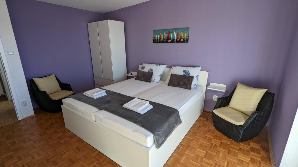Læs mere IndkvarteringsenhederMinimum forudbetaling er 100 EUR. Resten af reservationsprisen betales inden ankomst. Ankomsttid: efter kl. 16.00 eller tidligere, hvis det lykkes os at forberede lejligheden tidligere. Afgangstid: inden kl. 10.00. Kæledyr er velkomne. Rygning er kun tilladt på balkonen. Fester er ikke tilladt. Stille tid mellem 23:00 og 07:00.