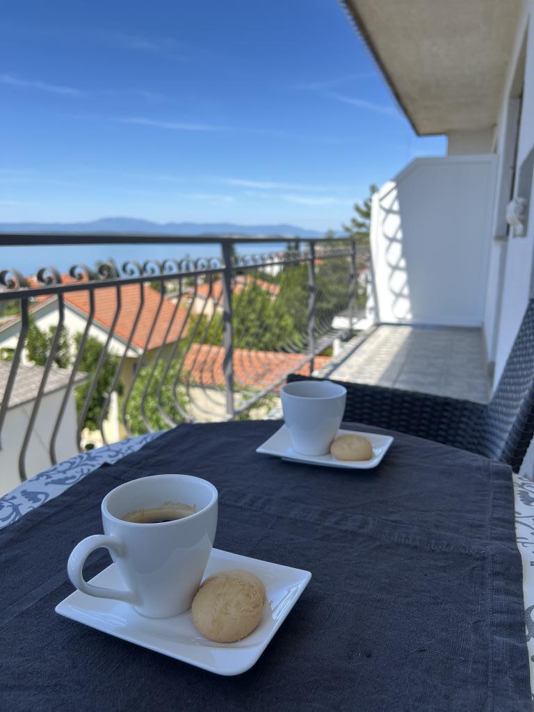 Komfortable og fuldt udstyrede familielejligheder, 300 m fra havet, med balkon og udsigt over havet og Krk-regionen, SAT-TV, Wi-Fi, gratis parkering på gaden eller mulighed for at reservere en parkeringsplads i privat parkeringsplads, grill i haven med masser af skygge og en gård til socialt samvær og afslapning, kæledyr tilladt, tæt på restauranter, indkøbscenter, underholdning og sportsfaciliteter...