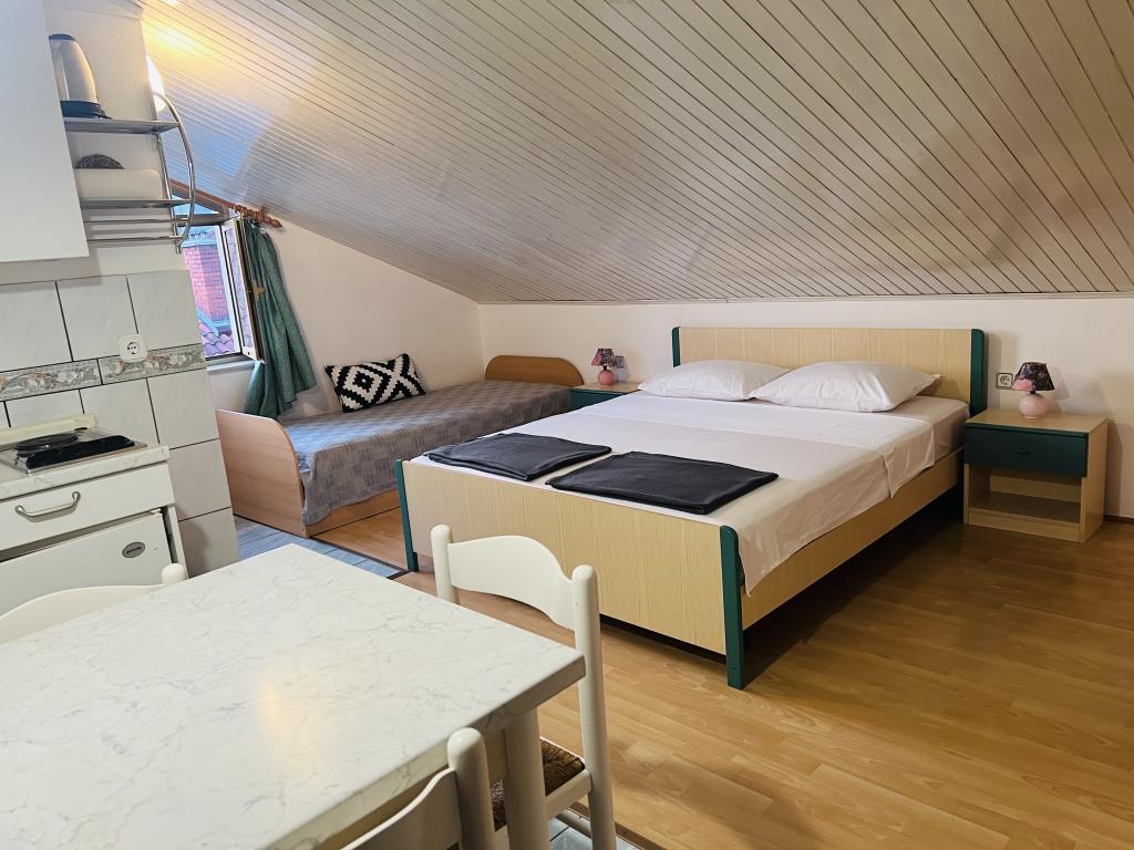 Vi tilbragte vores sommer med familien Mataija i 2019. Værterne er meget gæstfrie og altid klar til at møde dig. De har en skøn have, hvor børn kan lege trygt, og der er også en grill, hvor man kan lave mad. En stor fordel er, at du kan parkere din bil i gården eller foran huset. Lejlighederne er fuldt udstyret med alt hvad du behøver til dit ophold, og der er også store kædebutikker i nærheden. Den eneste vanskelighed kan være at vende tilbage fra stranden, fordi du skal klatre op ad bakke.
