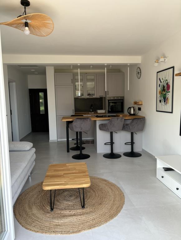 Moderne lejligheder med havudsigt – kun 70 m fra stranden med grill, gratis parkering og oplader til elbiler. Nyd den perfekte kombination af komfort, beliggenhed og privatliv i vores nyrenoverede lejligheder, kun 3 minutters gang fra havet. Beliggende i et roligt familiehus med en middelhavshave, tilbyder hver enhed private indgange, rummelige terrasser og alt hvad du behøver for en behagelig ferie. Hurtigt Wi-Fi, aircondition, satellit-tv, opvaskemaskine og vaskemaskine. ⸻ Lejlighed 1 – 50 m² med havudsigt, terrasse, balkon og have • 2 soveværelser (1 dobbeltseng, 2 enkeltsenge) • Stue med sovesofa og fuldt udstyret køkken • Badeværelse • Balkon + terrasse (30m2) Beliggende på bakken – både balkon og haveside Studiolejlighed • Stue med sovesofa • Køkken • Badeværelse • Terrasse Beliggende i stueetagen