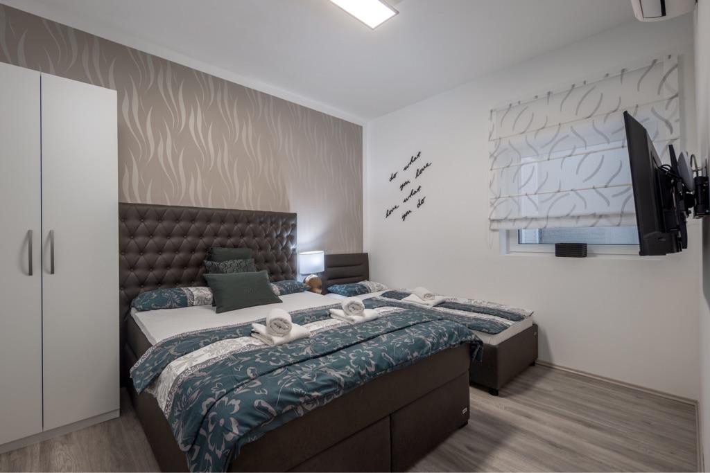 Føl dig hjemme i vores kompleks af feriehuse Villa Fijala med ferielejligheder og lejligheder. Bygningen er bygget i 1986 og totalrenoveret og moderniseret i 2021. Den dag i dag er vi opmærksomme på alle detaljer, og vores prioritet er vores gæsters komfort og velvære. Huset ligger omkring 700 meter i luftlinje fra centrum og stranden og har gratis parkering. Komplekset har 2 store lejligheder og 3 lejligheder, hver med separate indgange. Hver gæst har et stort udendørsområde til sin rådighed: en stor terrasse, en opvarmet pool (10,5m x 5,5m), en stor solrig terrasse med solsenge af høj kvalitet, et sommerkøkken med forskellige griller, to udendørs brusere og meget mere. .! Din Fijala-familie