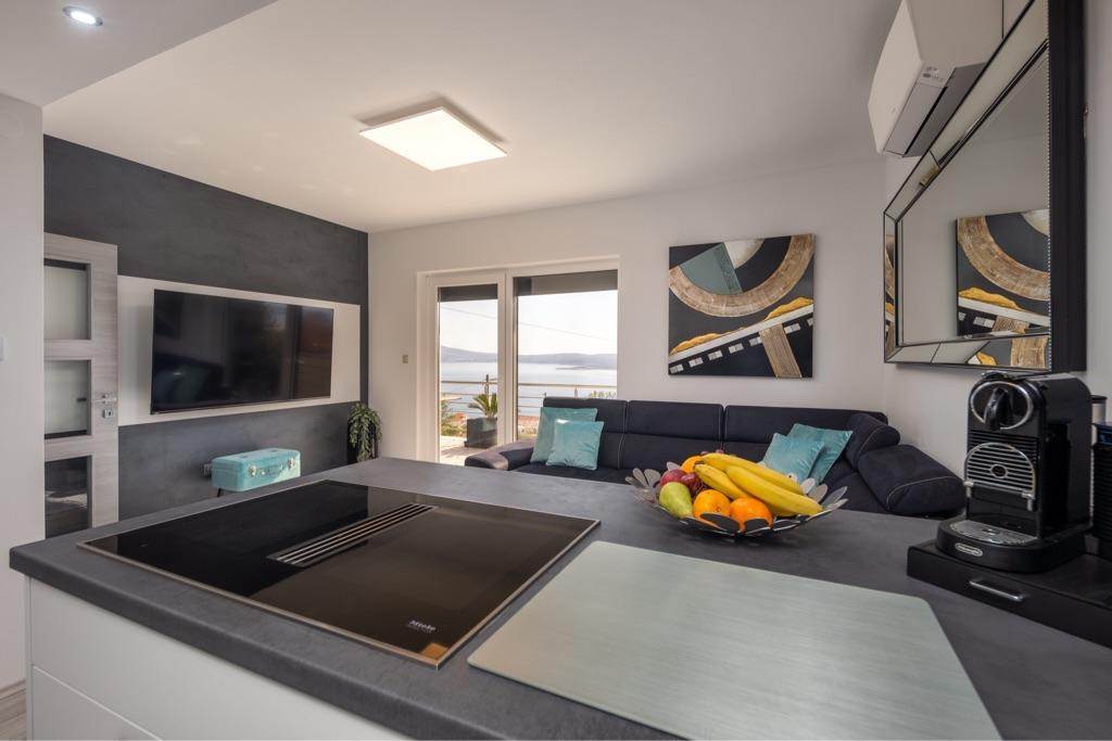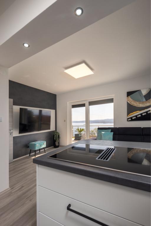 Et smukt område med fantastisk udsigt (enten pool eller hav). Der er også en meget flot atmosfære med belysning til hyggelige aftener. Lejligheden var stor, alt var meget velholdt og meget veludstyret. Du går virkelig ikke glip af noget, du kan grille på stedet, og der er et sommerkøkken, som du kan bruge. Værterne er meget varme og ivrige efter at behage deres gæster. Tak for den store tid og den store ferie! Vi vil gerne komme igen.