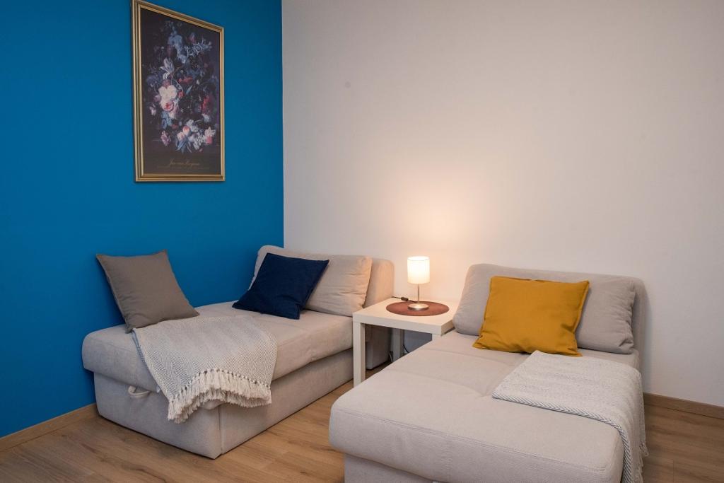 Den moderne møblerede lejlighed er beliggende i et familiehus. Et behageligt sted at slappe af eller arbejde, bestående af en entré, soveværelse med dobbeltseng, badeværelse, spisestue-køkken med sofaer med mulighed for at placere to senge. Lejlighederne ligger cirka 600 m fra byens torv, park, Special Rehabilitation Hospital, Thermal Water Park, sø eller op til 7 minutters gang. Der er en lokal butik i nabolaget. Nærheden af forskellige yderligere faciliteter, restauranter og caféer, apoteker og sundhedscentret giver mulighed for et givende og behageligt ophold.