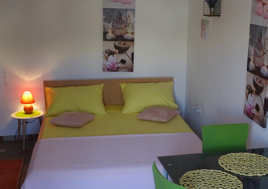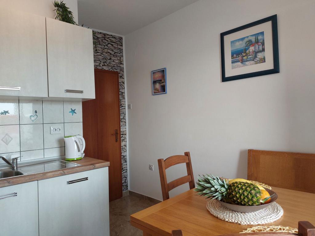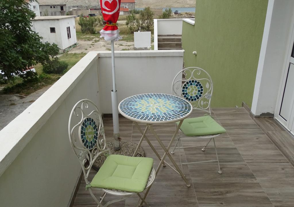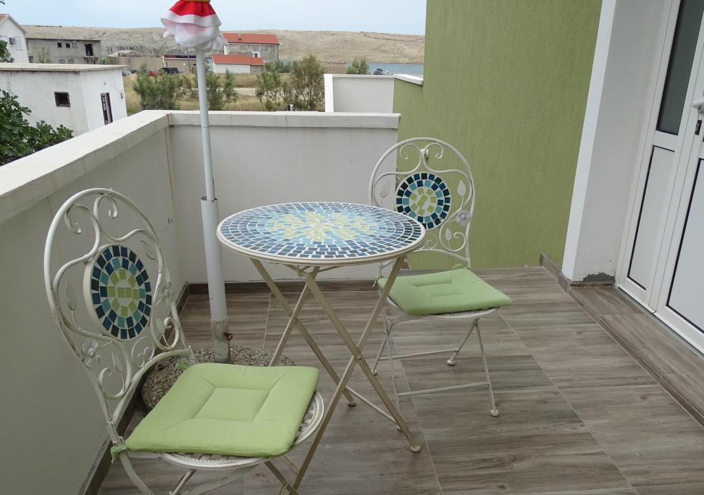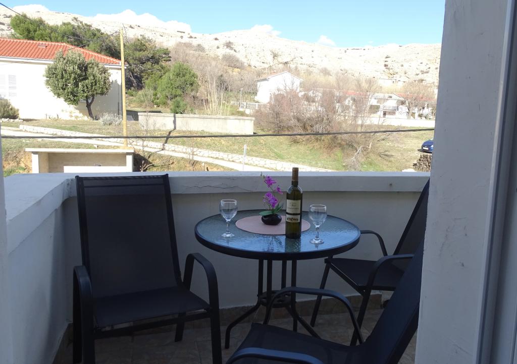 To værelses lejlighed A 4 til fire personer, i et roligt område, beliggende i Dinjiška, et lille malerisk sted på øen Pag. Beliggende på husets anden sal, med udsigt over havet, udstyret med aircondition på hvert værelse, har gratis wifi, satellit-tv, komfur, mikroovn, stort køleskab med fryser, elkedel, separat indgang, grillplads, balkon med udsigt til bl.a. havet, rent linned. Du har også gratis parkering til dit køretøj på stedet. Når du ankommer til øen, vil du se et helt anderledes, usædvanligt stenlandskab af grusom natur under bjerget Velebit med så mange forskellige former, som kun naturen kan lave.