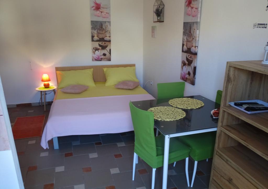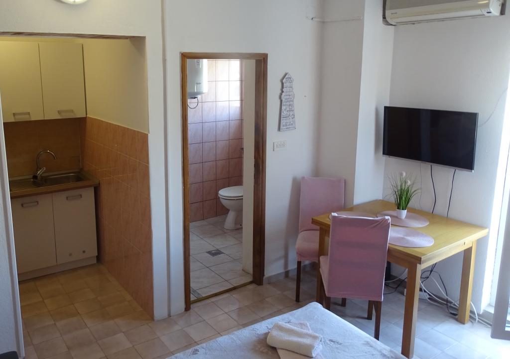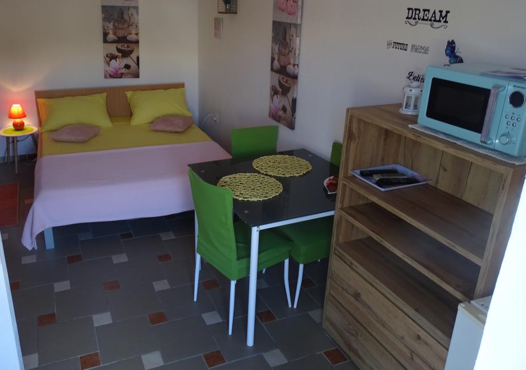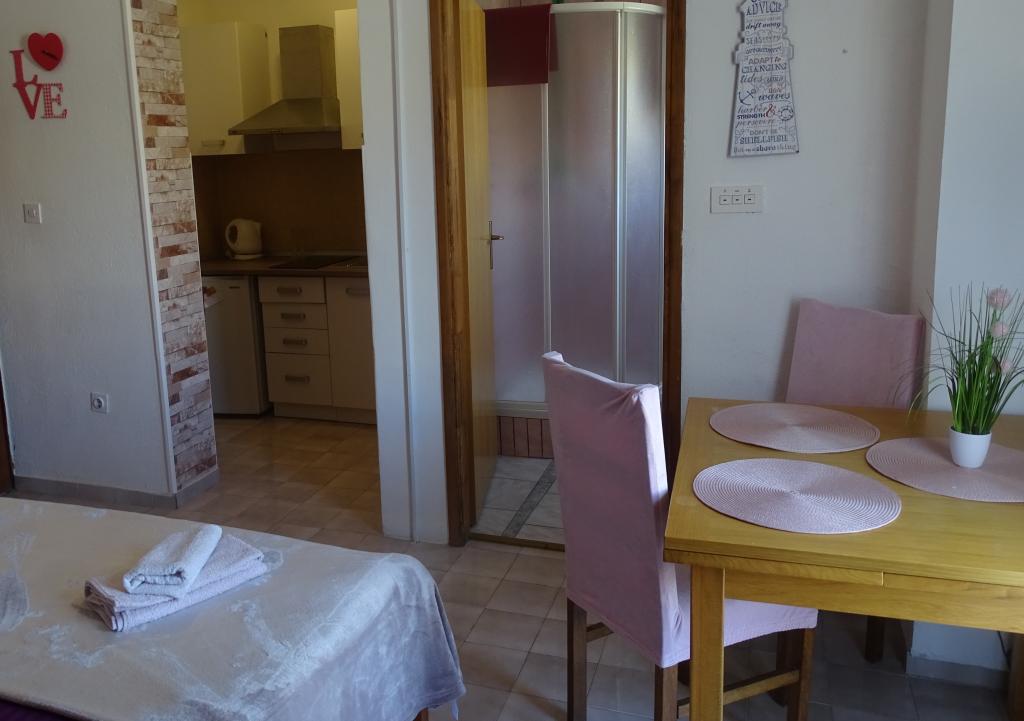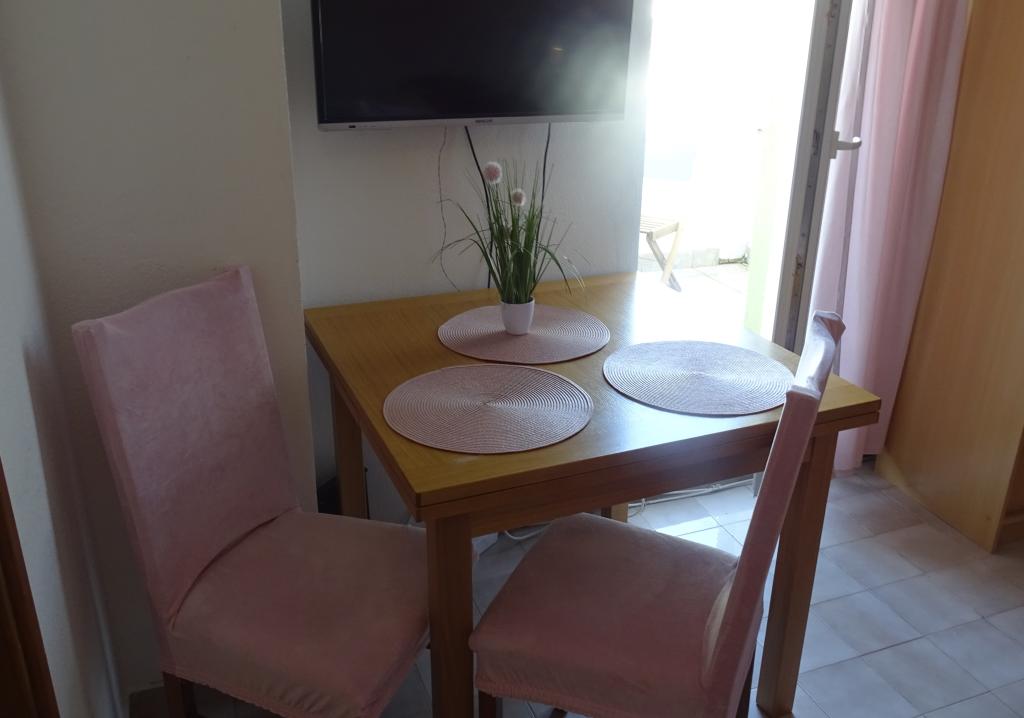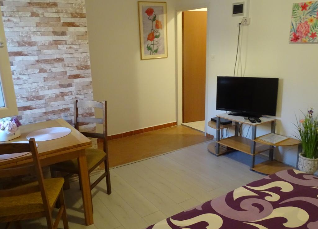 To værelses lejlighed A 4 til fire personer, i et roligt område, beliggende i Dinjiška, et lille malerisk sted på øen Pag. Beliggende på husets anden sal, med udsigt over havet, udstyret med aircondition på hvert værelse, har gratis wifi, satellit-tv, komfur, mikroovn, stort køleskab med fryser, elkedel, separat indgang, grillplads, balkon med udsigt til bl.a. havet, rent linned. Du har også gratis parkering til dit køretøj på stedet. Når du ankommer til øen, vil du se et helt anderledes, usædvanligt stenlandskab af grusom natur under bjerget Velebit med så mange forskellige former, som kun naturen kan lave.