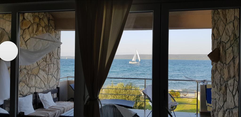 Første række til havet, 2 lejligheder i et familie-halvt dobbelthus i stueetagen og første sal på øen Pašman, Dobropoljana. Nyd en familieferie lige ved stenstranden med have, liggestole, udendørs bruser, grill, WIFI, aircondition, parkering. Du kan booke hele huset eller en separat lejlighed i stueetagen eller ovenpå. Med sin enestående beliggenhed ved havet skiller denne feriebolig sig ud fra flertallet. Fra haven kommer du direkte til stenstranden, hvor du kan nyde en smuk solopgang eller solnedgang. Havet er krystalklart, velegnet til svømning og dykning. Øen Pašman er kendt for sine smukke sandstrande og talrige stier, der egner sig til cykling. En imponerende sti venter dig her til den højeste top på øen Bokolj (274 m), hvorfra du kan nyde udsigten over Zadar og Kornati National Park.