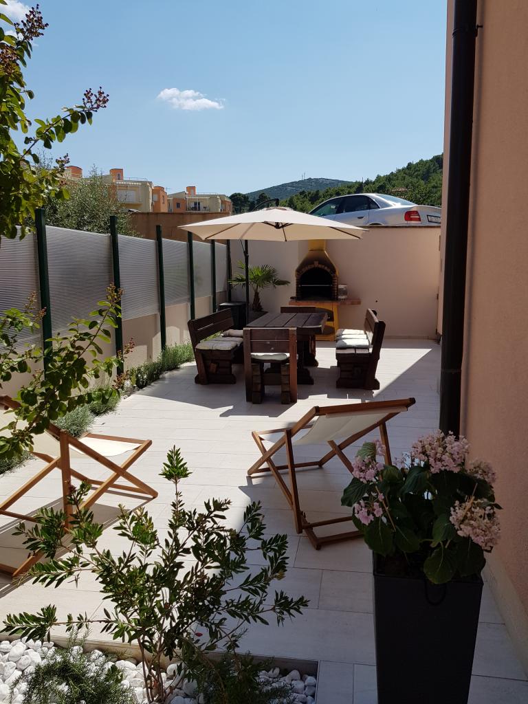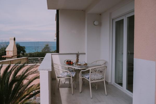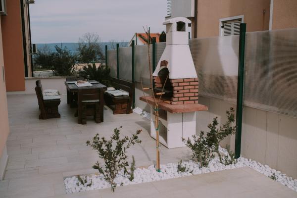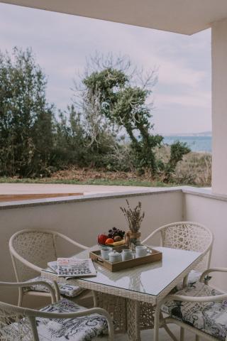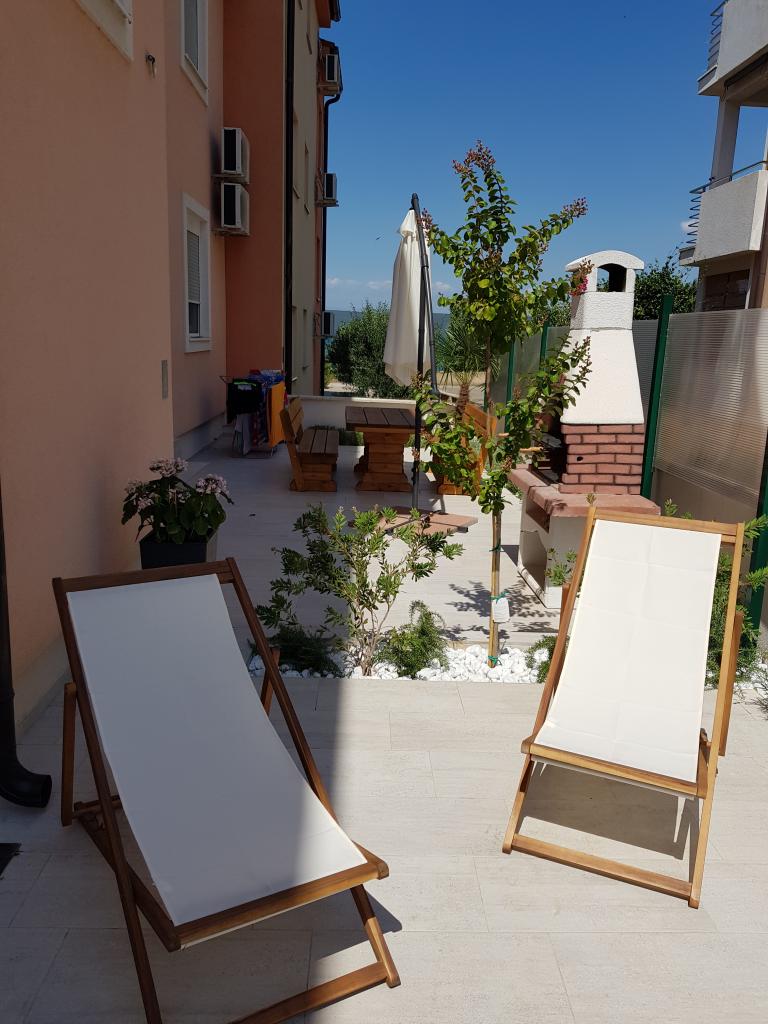 Ny moderne udstyret lejlighed, minutters gang til stranden, stueetagen med balkon og stor terrasse med udsigt. Ideel til yngre børn og familier på udkig efter fred og ro med krusetrækker og summen af bølger!