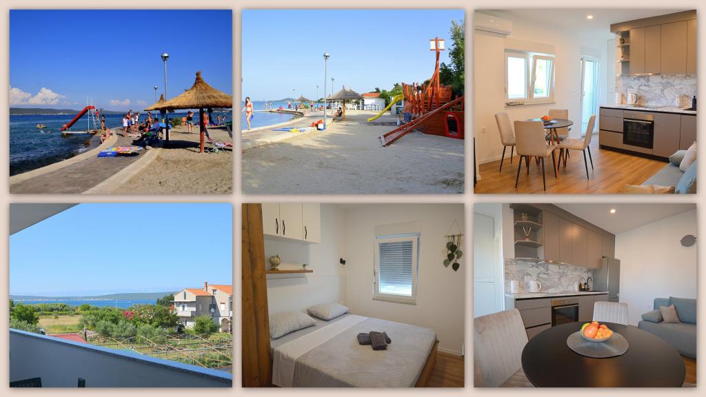 Leder du efter en ferie på øen Pašman? Vores nyrenoverede lejligheder med to soveværelser i Dobropoljana tilbyder den perfekte kombination af komfort og beliggenhed. Fuldt udstyrede og beliggende kun 1 minuts gang fra stranden, caféer og restauranter. Med sikker parkering garanterer de en ubekymret sommer uden behov for bil.