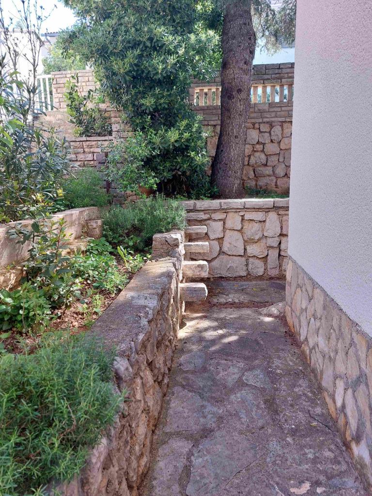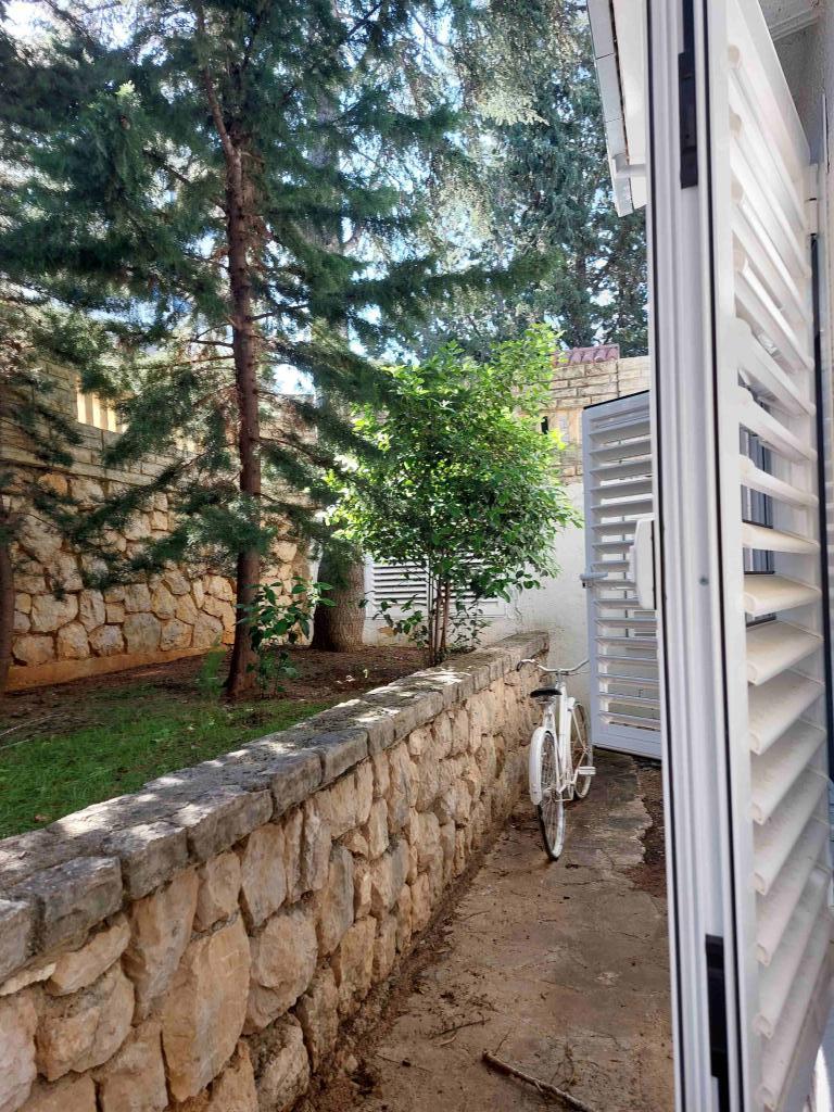 Nyd vores helt nyrenoverede lejlighed i skyggen af terrassen med udsigt over det klare hav! Lejligheden ligger i villaens stueetage og er omgivet af en stor, skyggefuld gårdhave i første række til havet. Tilbring eftermiddagsvarmen i vores duftende have med at nippe til kolde cocktails, mens du venter på den smukkeste solnedgang! Hos os er alt lige ved hånden - en drink i den nærliggende strandbar, middag på pizzeriaet ved siden af, alle former for aktiviteter på stranden, læsning af en bog i skyggen af gamle fyrretræer ved havet, en legeplads i skyggen, en oplyst promenade ved havet. Du skal ikke bekymre dig om parkering - den er stillet til rådighed for dig i gården. Da vi er store dyreelskere, er dine kæledyr velkomne!