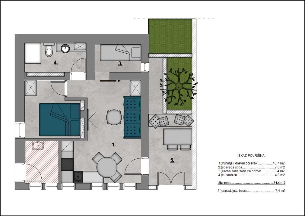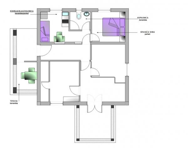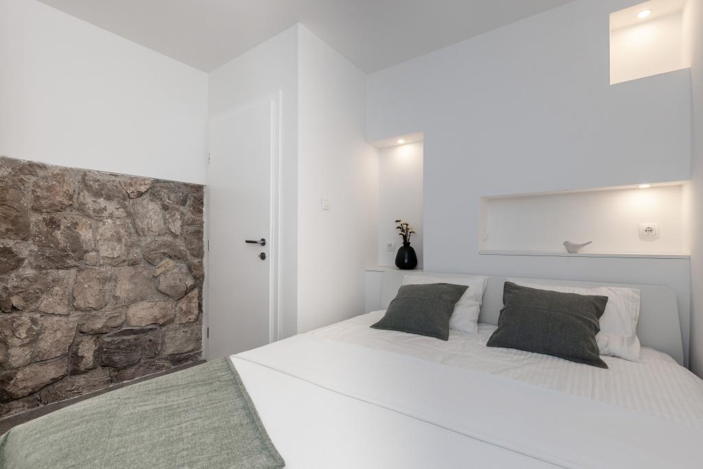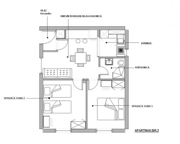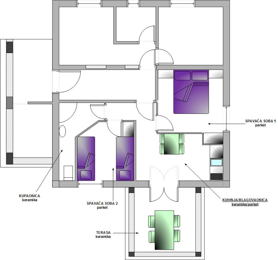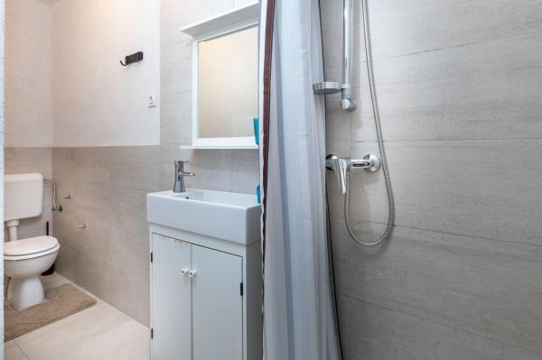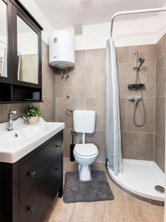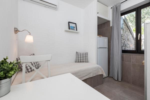 Fuldt udstyrede lejligheder i en vidunderlig beliggenhed med udsigt over havet i et hus omgivet af grønne områder. Anlægget ligger 150 m fra havet og stranden, ved siden af er der en tæt fyrreskov. En oplyst promenade strækker sig gennem fyrreskoven langs selve havet. Hver lejlighed har eget køkken og badeværelse samt 1-2 soveværelser, alt efter lejlighed. Køkkenet har alle de nødvendige apparater og service. Lejligheden har en ovn eller en mikrobølgeovn (afhængigt af lejligheden). Værelserne har komfortable senge, sengelinned og håndklæder leveres på badeværelset. Lejlighed A4 har en rummelig terrasse med smuk udsigt over havet og terrassen er en integreret del af lejligheden Lejlighed A4+1 har en overdækket privat terrasse ved siden af lejligheden, omgivet af grønne områder. Studielejligheden har sin egen private terrasse ved siden af lejligheden, adskilt fra passagen, med en smuk udsigt over havet. Grundplanen for hver boligenhed er knyttet til billederne, så du kan se størrelsen og indretningen af værelserne . Hver lejlighed har sin egen parkeringsplads.
