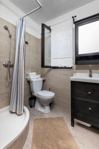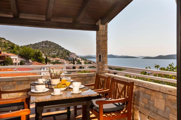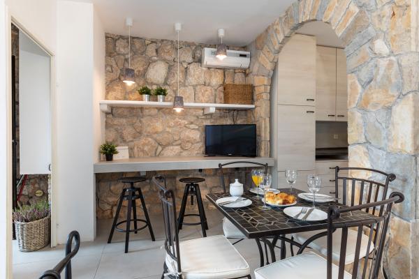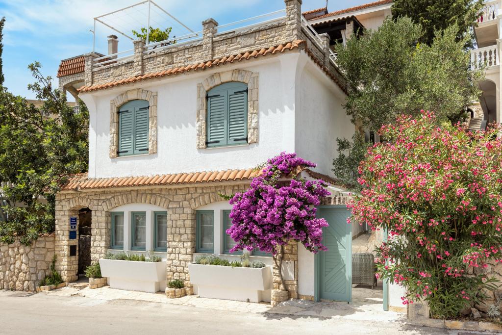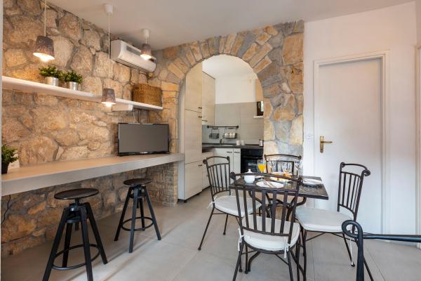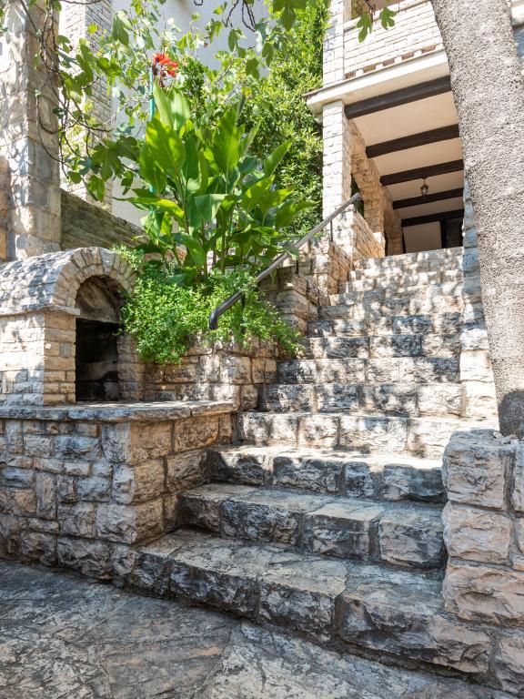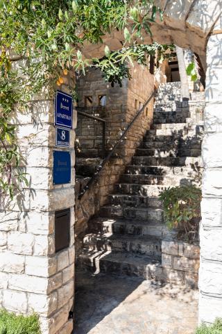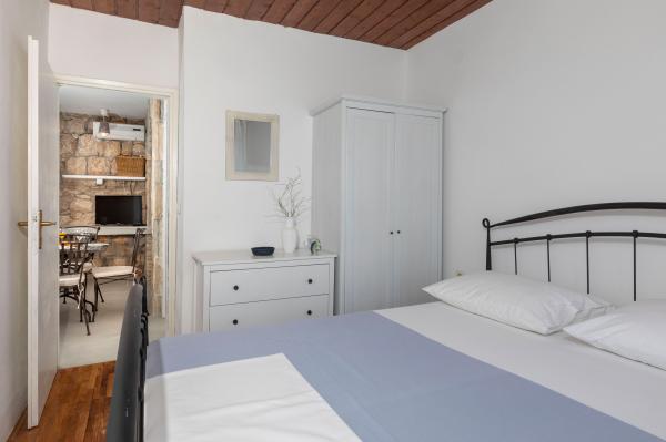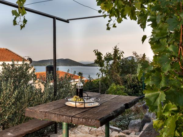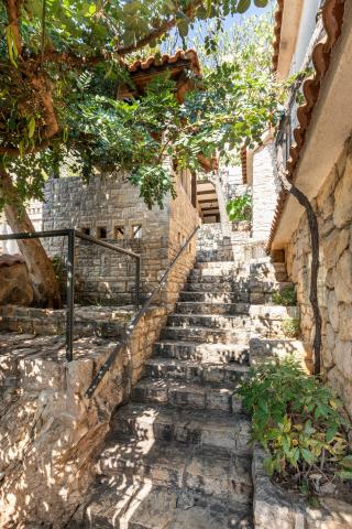 Selve huset er fantastisk. Sten omgivet af oliven, laurbær, figner og blomster. Den har et hjørne med en grill, mens selv høns gemmer sig bagerst i huset. Lejligheden har en vidunderlig udsigt og alt hvad du behøver for en behagelig ferie. Venlig vært. Den hurtigste måde at komme til stranden på er ad trapper. To eller tre minutter, og du er på stranden. Det er lidt mere op ad bakke. Der er altid et hjørne i skyggen på stranden. Der er et bageri og et lille marked i nærheden. Vi havde en fantastisk tid på ferien.