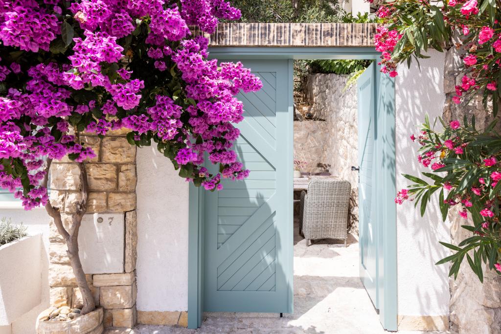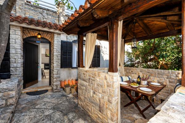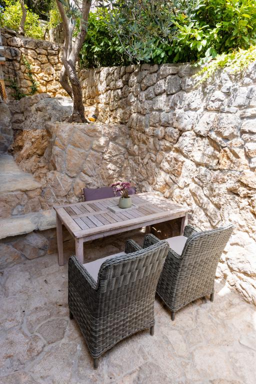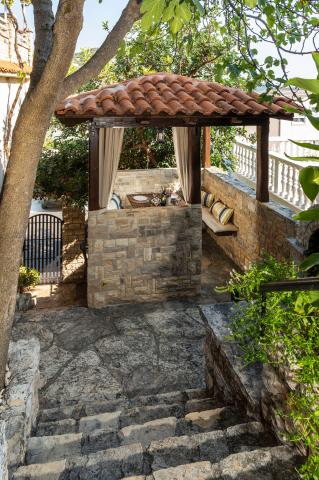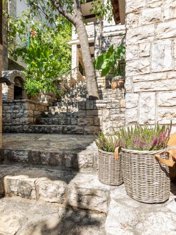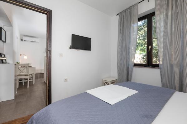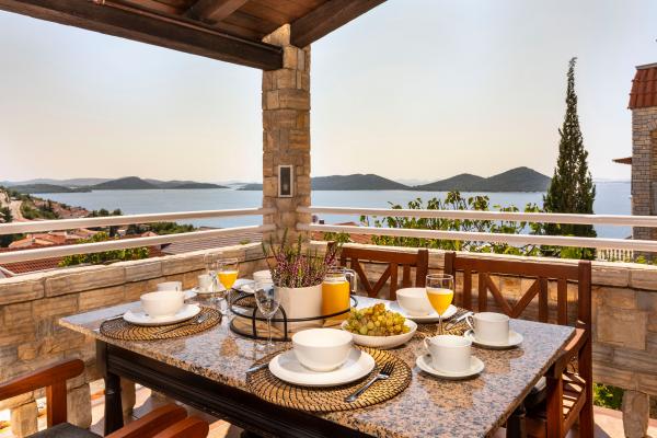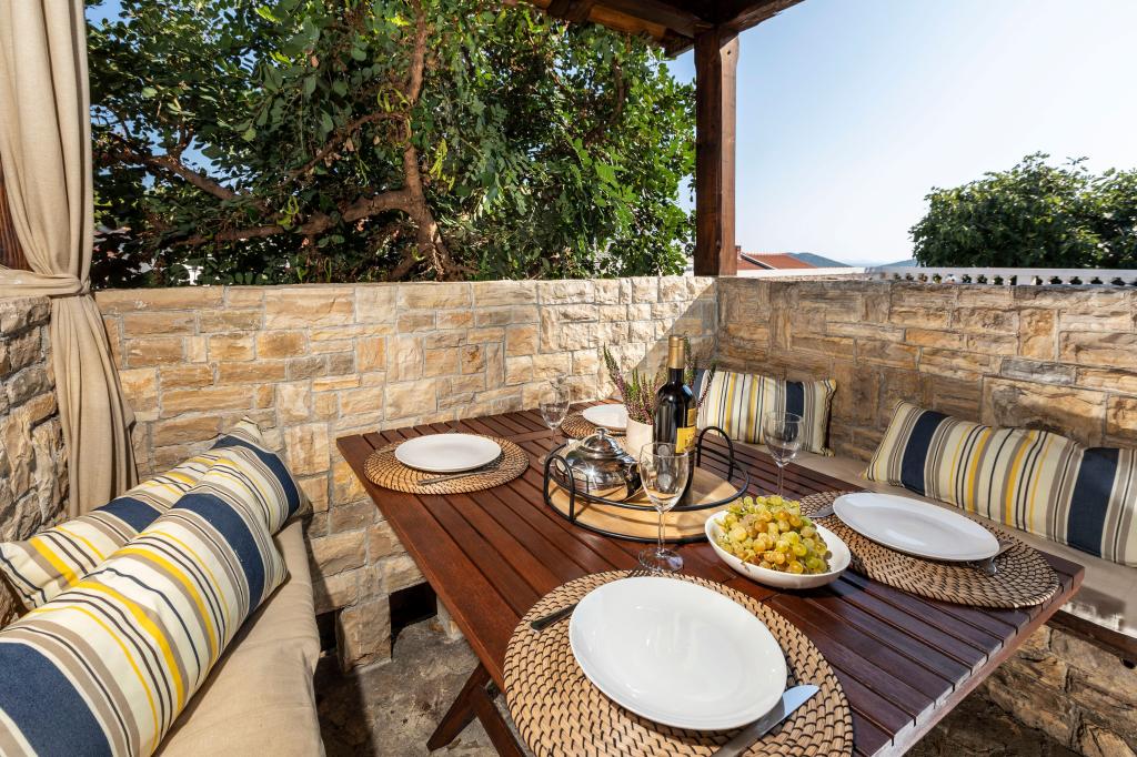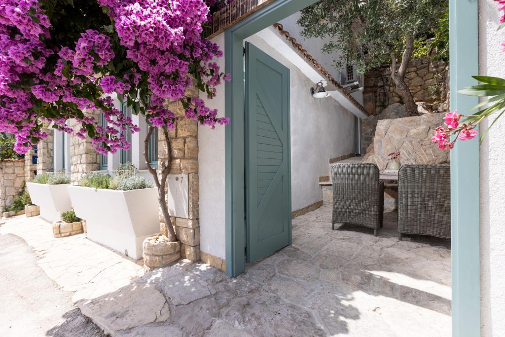 Selve huset er fantastisk. Sten omgivet af oliven, laurbær, figner og blomster. Den har et hjørne med en grill, mens selv høns gemmer sig bagerst i huset. Lejligheden har en vidunderlig udsigt og alt hvad du behøver for en behagelig ferie. Venlig vært. Den hurtigste måde at komme til stranden på er ad trapper. To eller tre minutter, og du er på stranden. Det er lidt mere op ad bakke. Der er altid et hjørne i skyggen på stranden. Der er et bageri og et lille marked i nærheden. Vi havde en fantastisk tid på ferien.