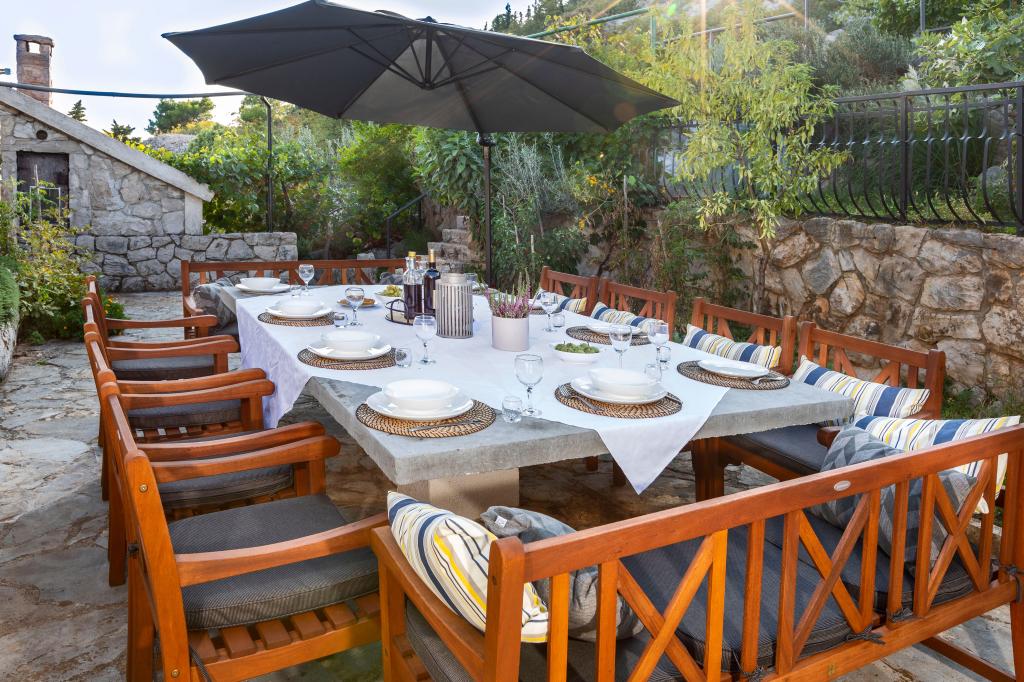 Efter aftale brug af den store terrasse bag huset og grill. Velkomstdrinken er inkluderet i prisen. Der er 2 cateringvirksomheder på stranden. På hovedstranden er det muligt at leje en vandcykel og arrangere en bådtur. Tæt på Vrana Lake naturpark med tilhørende indhold.