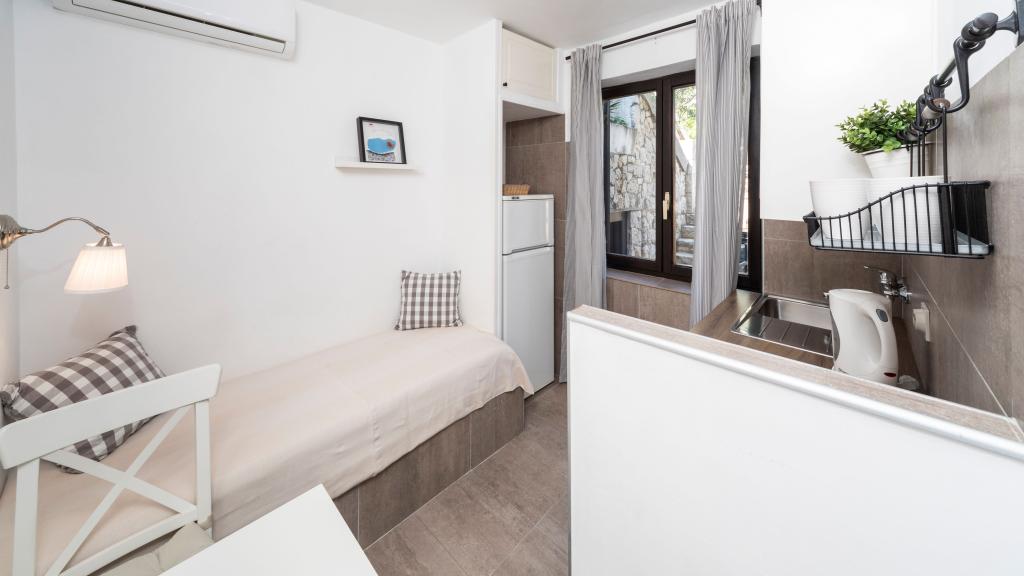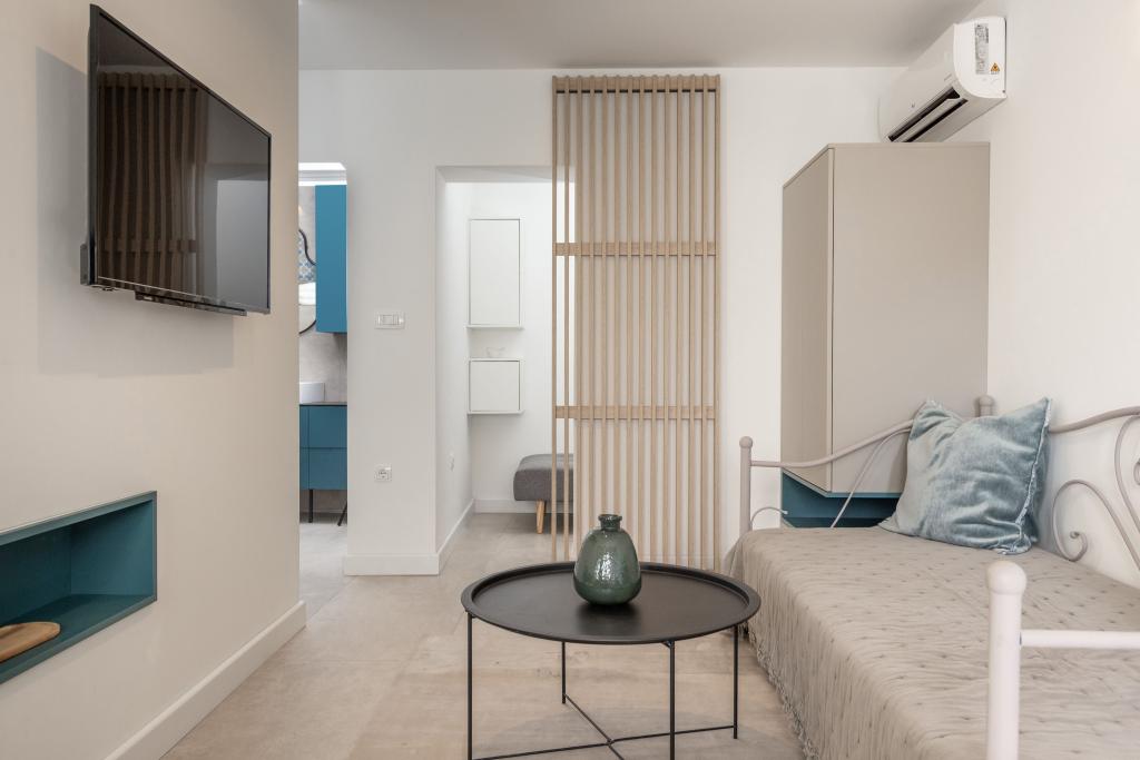 Lejligheden er meget pænt dekoreret og ryddig. Værterne er meget venlige. Men afstanden til stranden er ikke 100 m, som det siger, men 300 meter op ad trappen, hvilket ikke er meget praktisk, hvis du går med små børn.