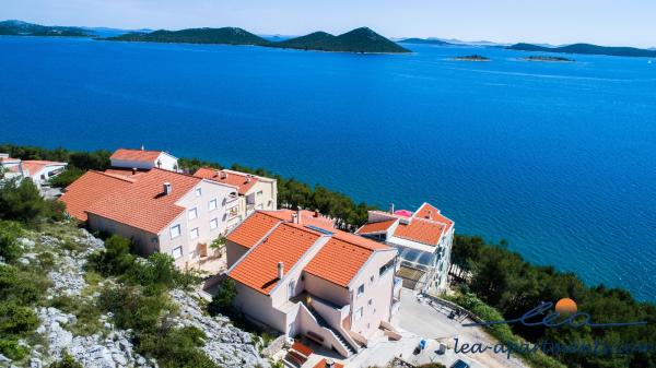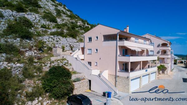 Lejligheder Lea er et ideelt sted for en familieferie, først og fremmest, men også for alle, der leder efter en aktiv ferie og en sjov ferie. LEA LEJLIGHEDER: 4 x 2+2 lejligheder og 1 x 4+2 lejlighed. Lejlighederne ligger omkring 50 meter fra havet. Hver lejlighed har adgang til terrasser, udsigt over havet og alt det nødvendige udstyr til et behageligt ophold hele dagen lang. Lejlighederne har aircondition, satellit-tv, gratis Wi-Fi forbindelse (Optisk superhurtigt internet), grill og egen garage! Lejlighederne er kategoriseret med 4 *