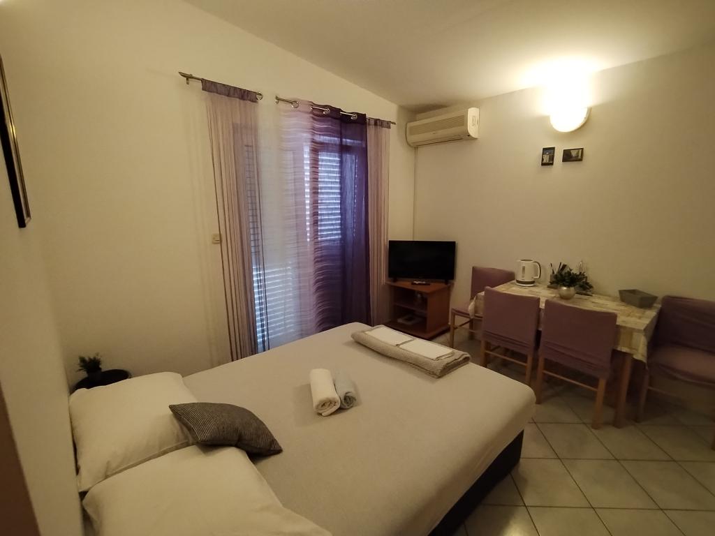 Apartments Marko er fuldt udstyrede lejligheder til fire personer. Lejlighederne består af et soveværelse med dobbeltseng og et klædeskab, et badeværelse med bruser, en stue med en seng til to personer og et tv. Køkkenet er udstyret med alle retter, mikroovn, kedel, køleskab. Strygejern og strygebræt. Lejligheden har aircondition, Wi-Fi og hver gæst har deres egen parkeringsplads. Der er ca. 900 m til stranden. På den ene side er den smukke Vrana sø og på den anden side havet. Butikken ligger 10 m fra lejligheden. En tur til Krka-vandfaldene, en rundvisning i Kornati eller et besøg i Zadar og havorgelet og meget mere vil gøre dit ophold uforglemmeligt. Værten har sin egen vin, som hver gæst modtager som et tegn på velkomst. Anlægget har også en grill.