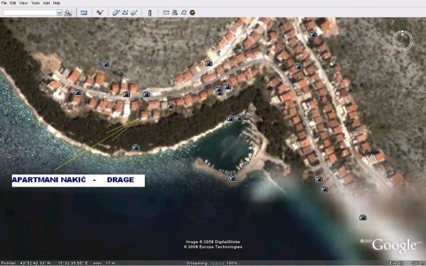 Nakic lejligheder, der ligger i landsbyen Dolaška kære. Det er en smuk lille bugt, der er væk fra hovedvejen og trafik, i al sin skønhed er synlig fra havet. Alle lejligheder er udstyret med alt beklædningen behageligt ophold, såsom aircondition, trådløst internet, satellit-tv og meget mere. I nærheden af huset er en grill til rådighed for kprištenje. Også alle lejligheder har store terrasser med direkte udsigt over havet og øerne, nemlig, er huset beliggende ud til havet og vores strande. Naturligvis, at gæsterne kan vælge stranden, du ønsker, og hvor seugodno føle. I skyggen af fyrretræer over bugten ligger 1,5 km lang jogging trail. Vi er venlige værter og altid på din tjeneste.