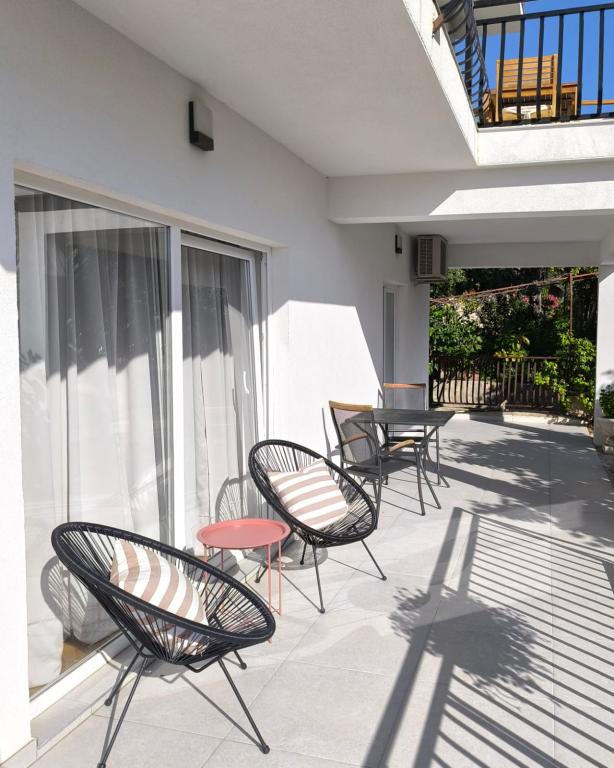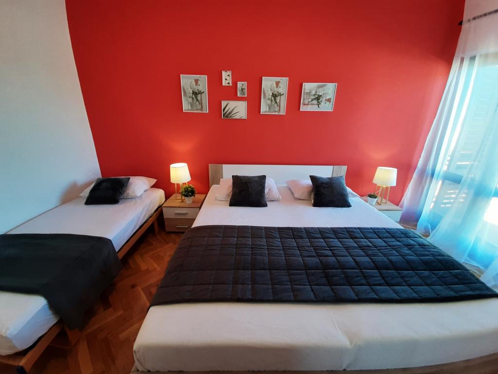 Fuldt møblerede lejligheder (komfur, køleskab, bestik og madlavning) og satellit-tv, og parkering lige ved siden af objektet i Drage, der ligger 200 meter fra stranden. Lejlighederne består af et eller to soveværelser, et badeværelse med toilet, bruser, køkken, spisestue og terrasse med udsigt over havet og øerne smukke riviera. Alle nødvendige faciliteter (restauranter, butikker, bagerier, caféer ..) Er kun 2 minutters gang fra huset. Luk Vrana sø og Kornati bidrage Drage perfekte sted at tilbringe en ferie.