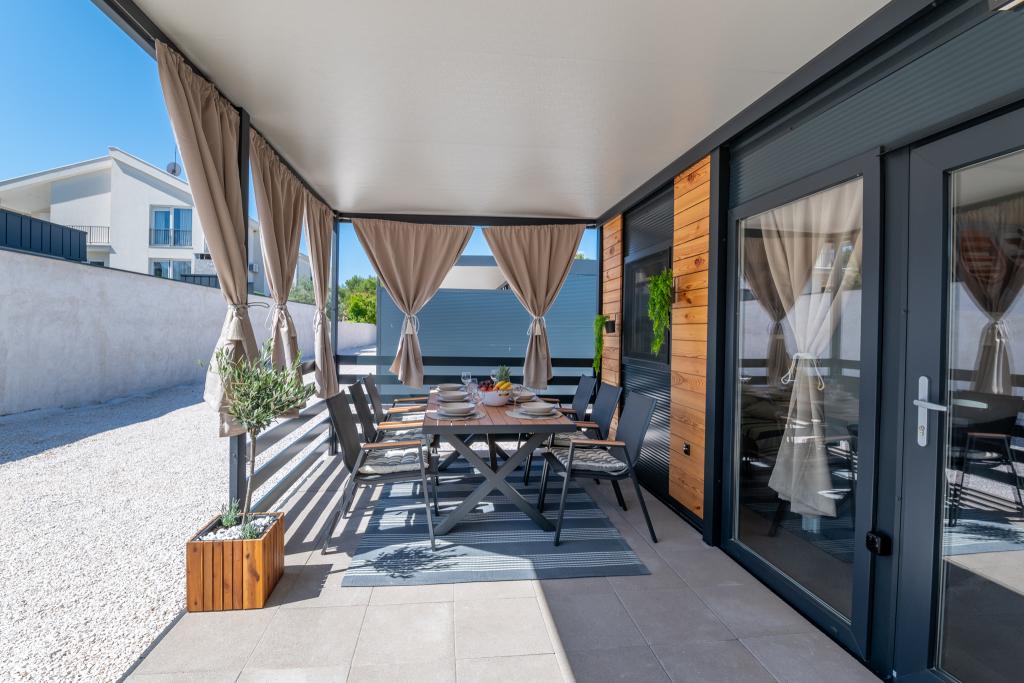 Oplev den perfekte ferie ved havet i vores charmerende mobile homes, der ligger kun 70 meter fra Porat-stranden i den fredelige landsby Drage! Der tilbydes to huse, der hver især kan rumme op til 4 voksne og 1 barn. Husene har to soveværelser. Det ene har en dobbeltseng, der måler 160x200, mens det andet værelse har en dobbeltseng, der måler 140x200. Derudover er der en sovesofa, der kan rumme et barn op til 5 år. Hvert værelse er udstyret med komfortable senge og sengetøj, så du får den hvile, du fortjener. Stuen er udstyret med moderne møbler og et tv, perfekt til aftenafslapning. Køkkenet er fuldt udstyret med alle nødvendige apparater, herunder køleskab, komfur, kaffemaskine, elkedel og mikrobølgeovn. Nyd din morgenkaffe eller aftendrink på den rummelige terrasse på 24m²! Send venligst alle forespørgsler udelukkende via kontaktformularen!