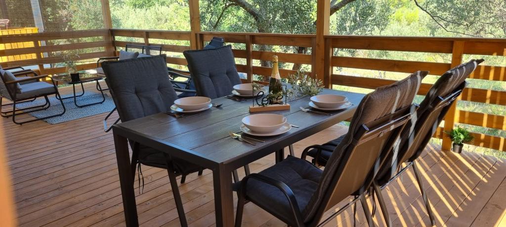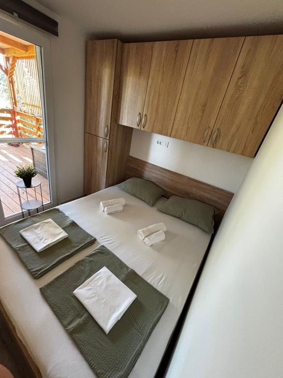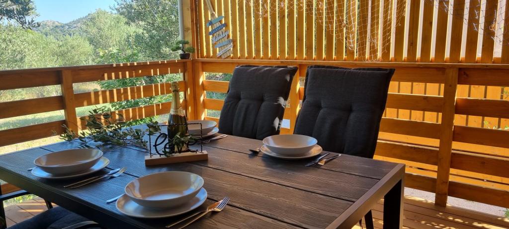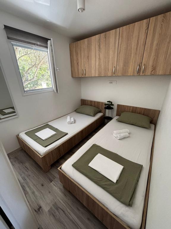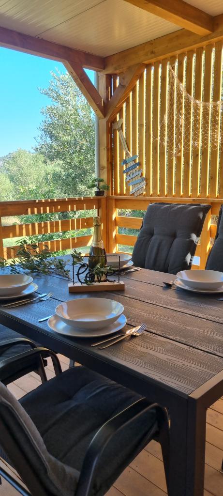 Olive Nest er et mobilhome, der er tilgængeligt fra 2024. Huset er fuldt udstyret med et moderne design og måler 32 m2 med en 32 m2 overdækket udendørs terrasse. Huset er udstyret med et soveværelse med en dobbeltseng og et værelse med to enkeltsenge, der også indeholder en udtræksseng til to personer. Inde i boligen er der et køkken med spiseplads og et badeværelse (toilet, bruser, håndvask). Den overdækkede terrasse giver mulighed for et heldagsophold og afslapning. Der er et udendørs spisebord på terrassen. Kom og oplev en ferie i hjertet af Dalmatien! ️- 1 værelse (dobbeltseng) - 2 værelser (to enkeltsenge) - udtræksseng til to personer - transportabel barneseng til et barn op til 2 år. -️ 1 badeværelse (bruser og håndvask) ️- stor terrasse på 32m2 med bord til 6 personer og opholdsområde ️- Wi-Fi ️- TV ️- opvaskemaskine ️- elektrisk grill - udendørs bruser ️- udstyret køkken - gratis parkering - støvsuger - hårtørrer - vaskemaskine