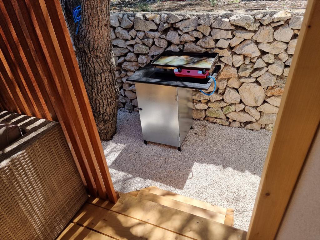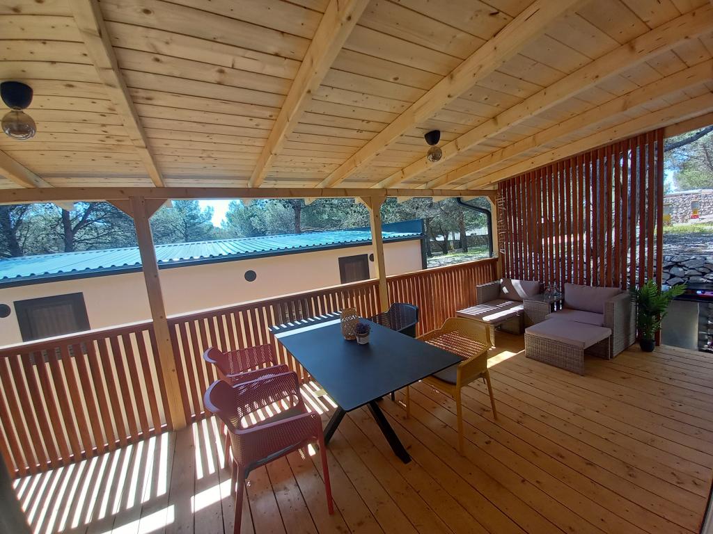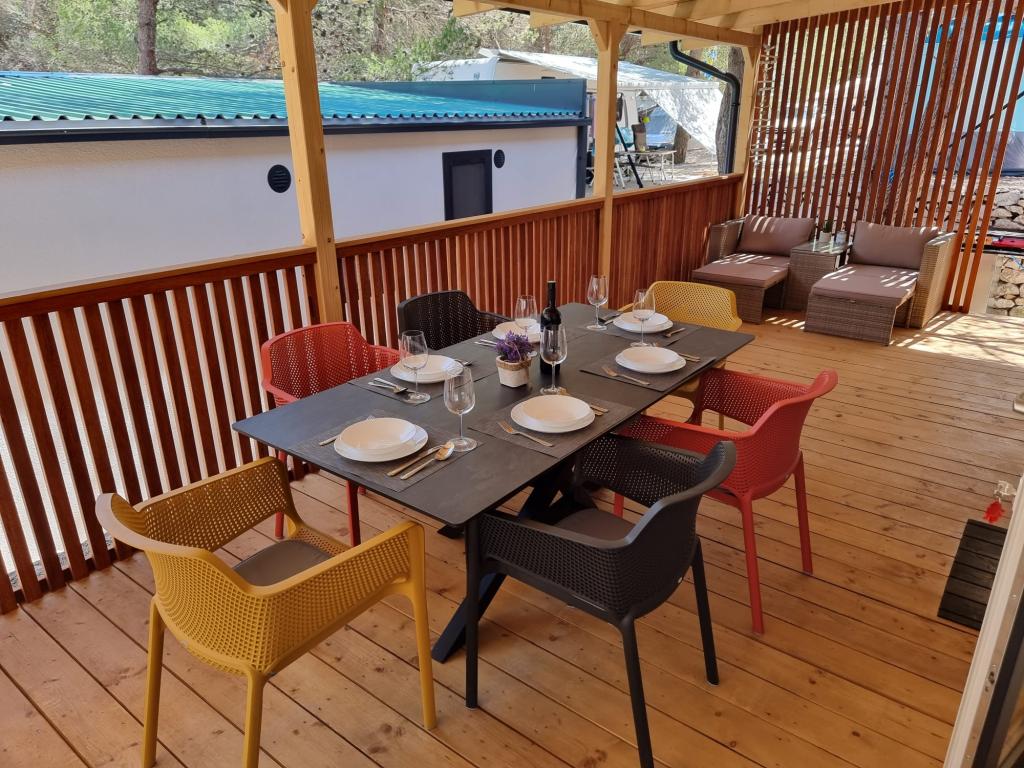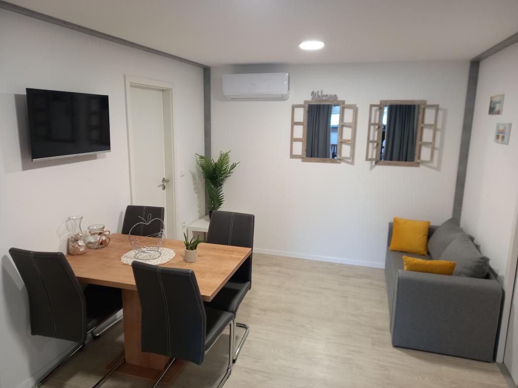 Premium Mobile Home LANA - beliggende i "Oaza Mira" Auto Camp, i byen Drage. Det ligger få skridt fra Porat-stranden og 100 meter fra den private strand i Oaza Mira-lejren. Det omfatter fuldt udstyret køkken, opholdsstue med sovesofa og tv, WiFi, aircondition, køleskab, opvaskemaskine, mikrobølgeovn og kedel samt eget badeværelse med hårtørrer og bruser. Det har en stor udstyret udendørs terrasse med grill. I nærheden er sanitære faciliteter (med vaskemaskiner), butik, café-bar (på stranden), beachvolleybaner, fodbold, minigolf, elforbindelse, legeplads (på stranden og i lejren), en restaurant og udendørs overdækket swimmingpool med havvand.