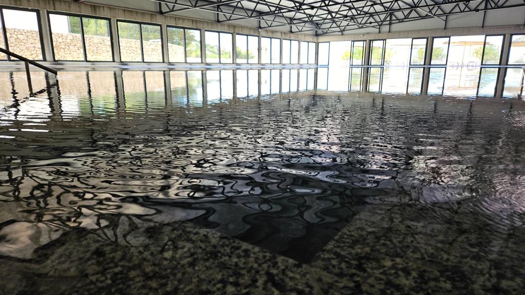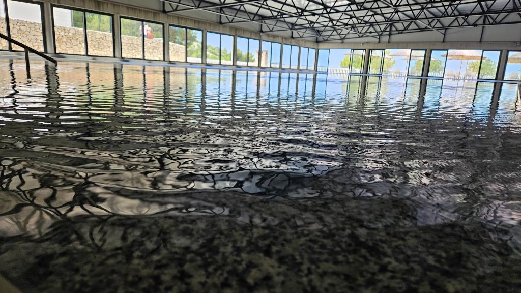 Udendørs overdækket swimmingpool med havvand Minigolf Tennis og fodboldbane Beachvolley Bowling
