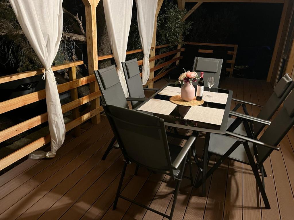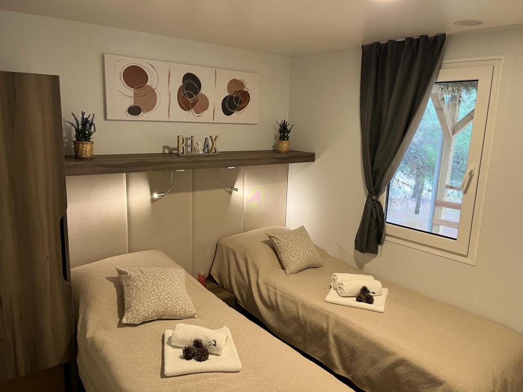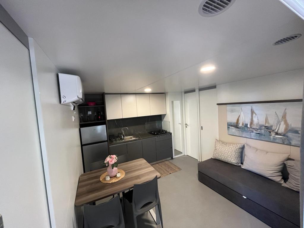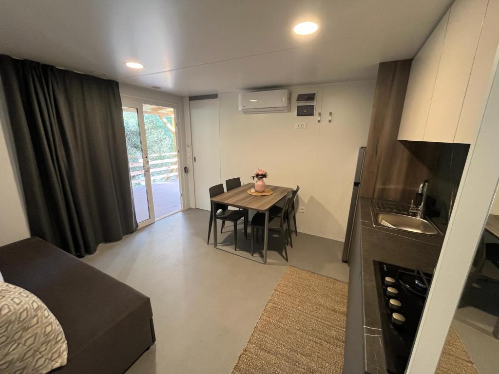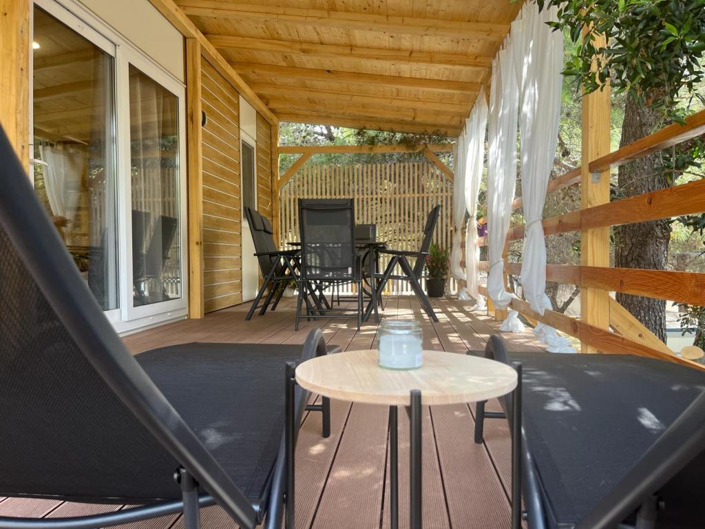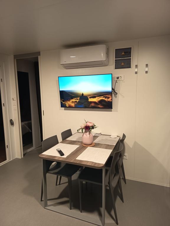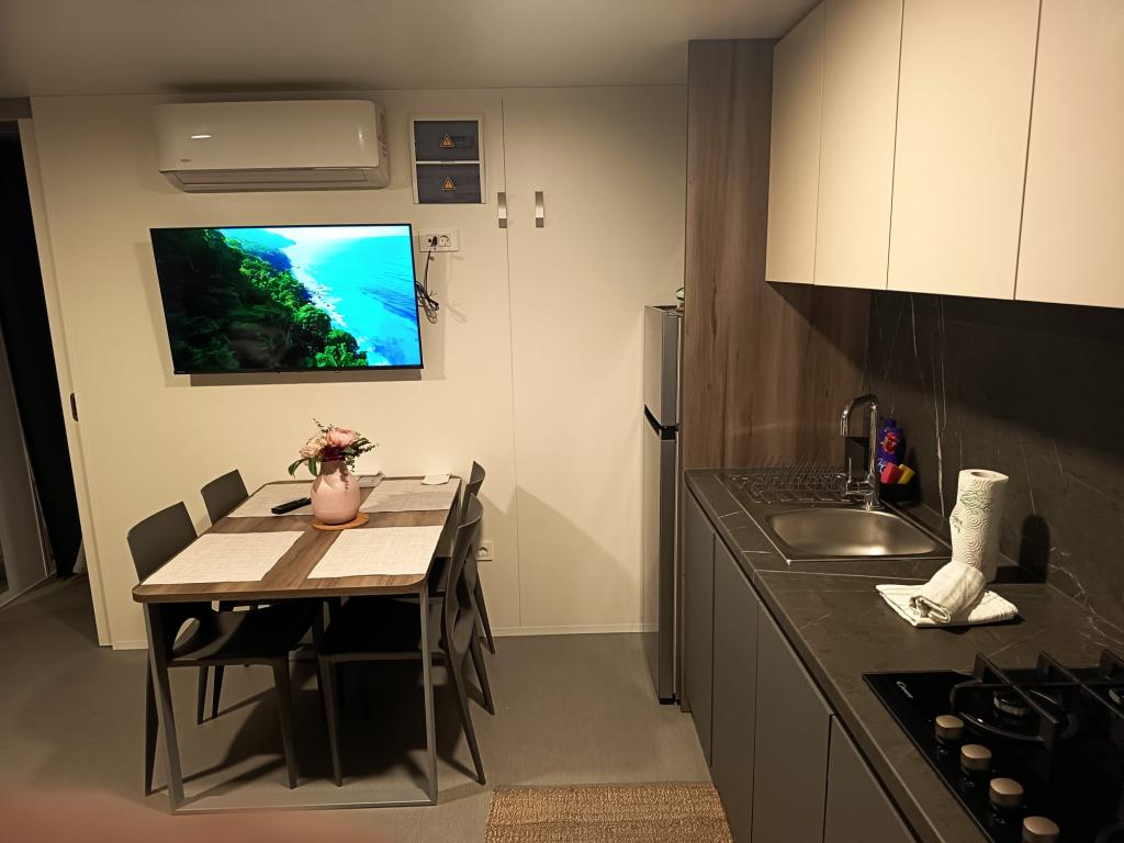 Mobilhome på 35m2 med en terrasse på 24m2, nyt og fuldt udstyret, beliggende i Oaza Mira-lejren. Lejren er kategoriseret som 4****. Inde i lejren er der et sanitært anlæg med mulighed for at bruge en vaskemaskine, tennisbaner, legeplads, restaurant, caféer, swimmingpool. I nærheden af lejren er der også flere strande med et blåt flag, en lystbådehavn og promenader. Afstand fra campingpladsen: - Pakoštane 4 km - Biograd na Moru - Vrana-søen 3 km - Zadar 39 km - Krka Nationalpark 36 km - Šibenik 24 km - Vodice 20 km Huset tilbyder: - et værelse med dobbeltseng 160x200 cm - et værelse med to enkeltsenge 90x200 cm - en stue med sovesofa til 2 personer - 2 badeværelser med bruser og toilet - et køkken udstyret til 6 personer - et køleskab med fryser - en elkedel - et keramisk kogeplade med 4 gasblus - en opvaskemaskine - Wi-Fi, Smart TV + Netflix - et spisebord + 4 stole - 2 liggestole, et bord og 6 stole - 2 parkeringspladser foran mobilhomet - sengelinned og håndklæder