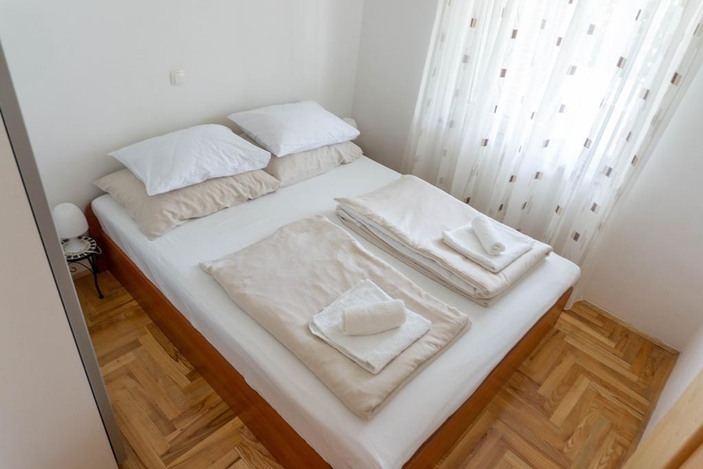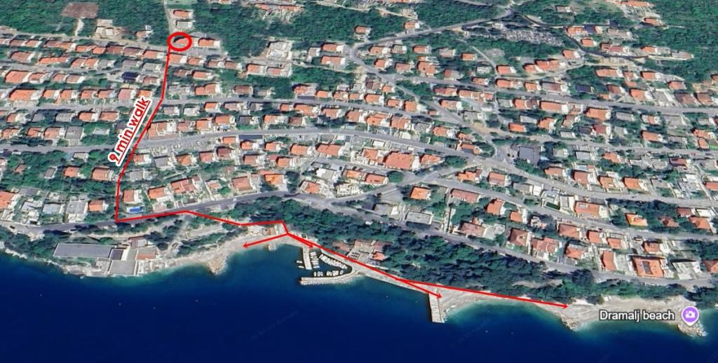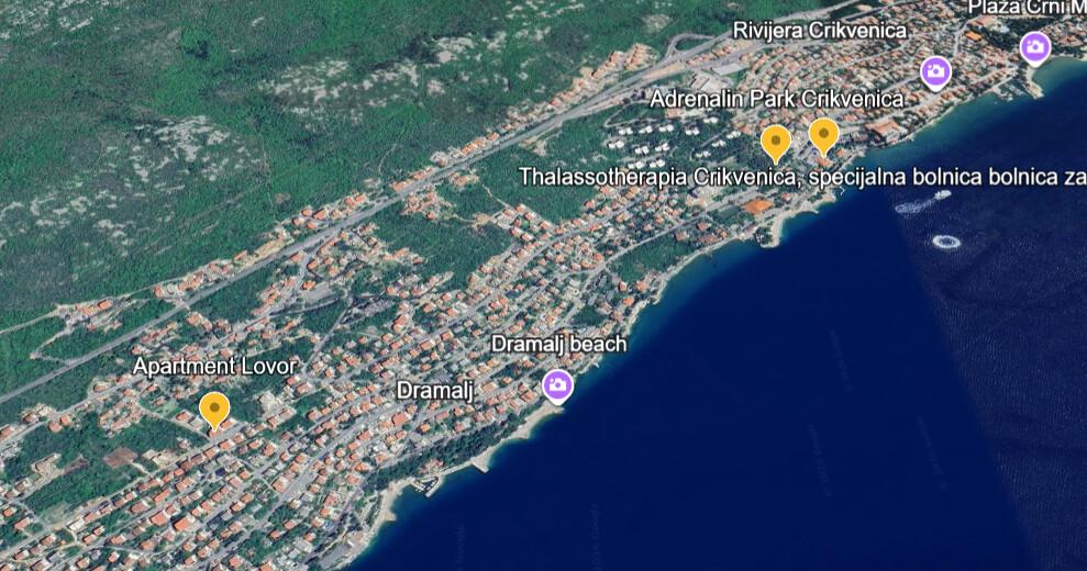 Lejlighed Lovor (31m²), stueplan i beboelsesejendom, roligt i Dramalj. 450m til havet, nær Thalassotherapia, Adrenalin Park og stier. Ideel til 2-3 voksne eller en familie. Indeholder soveværelse (160x200), badeværelse, terrasse og udstyret køkken (køleskab, komfur, mikroovn, elkedel, kaffemaskine, brødrister, udstyr) med stue (TV, sovesofa 75x200/150x200). Aircon, gratis Wi-Fi og privat parkering.
