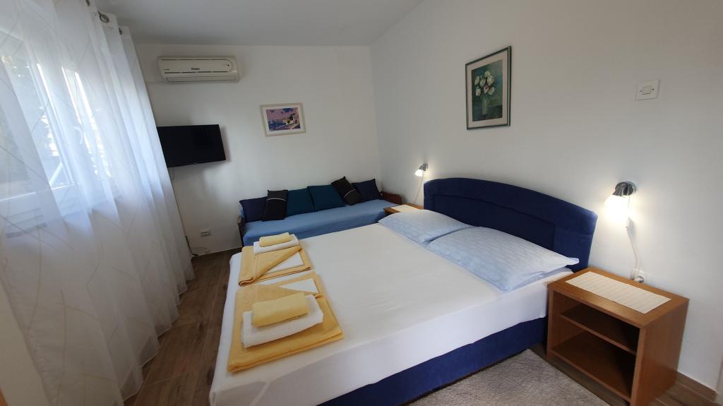 Familiehuset DANICA i landsbyen Dramalj omfatter 3 separate lejligheder til leje (hver på én etage) med gårdhave, have og privat parkeringsplads ved siden af huset. Det ligger i en stille gade, 5 min. gå til havet. Den nærmeste by er Crikvenica, 3 km væk. Ejeren/værten bor i den ikke-kommercielle del af huset i stueetagen. Udlejning har været vores familieejede virksomhed siden 1969, og til dato har faciliteten haft tusindvis af tilfredse gæster, der med glæde vender tilbage. I dag er jeres værter ægteparret Zlatka og Vladimir Pavković. Vi vil forsøge at få dig til at føle dig godt tilpas hos os. Vi sikrer fuld privatliv for vores gæster. A1 Lejlighed i stueetagen (2+1) har en overdækket terrasse med udsigt over havet og middelhavshaven. A2 Lejlighed (3+2) på 1. sal har 2 terrasser og en balkon med havudsigt. A3 Lejlighed (3+2) på 2. sal har en stor terrasse med udsigt over øen Krk, hele vejen fra Rijeka i vest til det fjerne Velebit-bjerg i sydøst. Lejlighederne har aircondition. Aircondition er inkluderet i prisen.