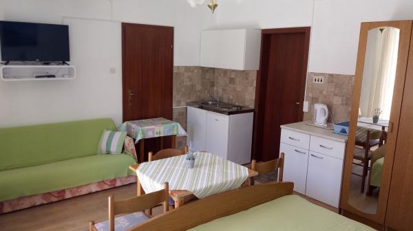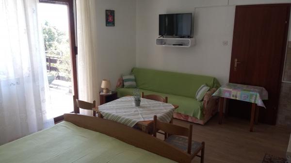 Lejligheden er beliggende i Dramalj, gaden Milovan Muževiža 116., med centrum af Crikvenica forbundet med bybus, bybåd og et attraktivt turist tog. Huset har flere boligenheder, der ligger på 1. etage i et familiehus, og resten af dem er levende ejere. Lejlighederne ligger langt væk fra havet omkring 5 min. gå til købmand og lige så meget til stranden. Ideel til små familier. Lejligheden består af et soveværelse med dobbeltseng og ekstra seng, fuldt udstyret køkken, badeværelse og hall. Indgangen til lejligheden er fra bagsiden af huset og kommer direkte til køkkenet, hvorfra den giver en smuk udsigt over havet og øen Krk samt en balkon foran soveværelset.