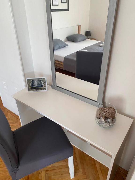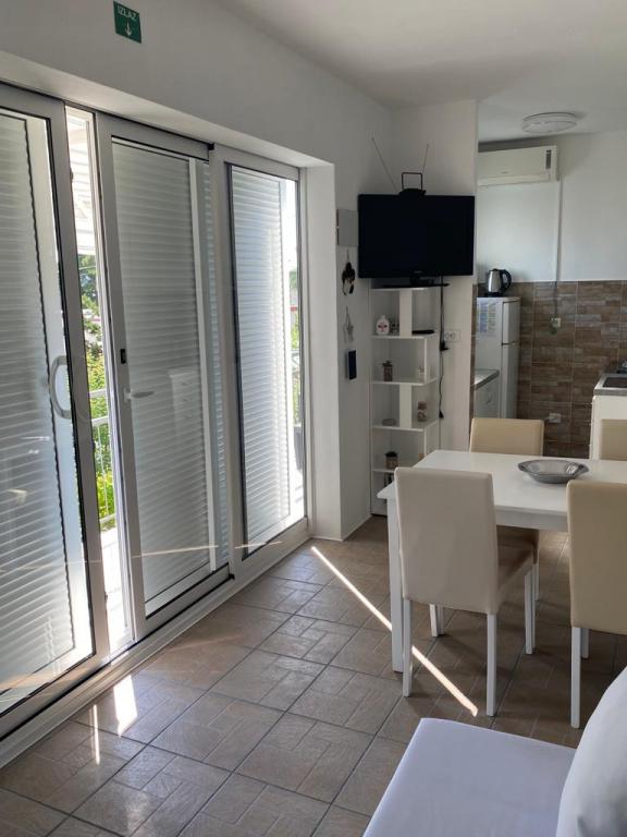 Lejlighed til 4-5 personer og lejlighed til 2 personer i et familiehus i Dramalj. I lejligheden til 4 personer har gæsterne to rummelige soveværelser, et køkken med spisestue, et badeværelse, en balkon og en terrasse med havudsigt. Lejligheden har WI-FI, TV og aircondition. Lejligheden til 2 personer består af et soveværelse, køkken, badeværelse og terrasse. Lejligheden har WI-FI, TV og aircondition. Butikken ligger i umiddelbar nærhed af indkvarteringen (50 m). Faciliteterne ligger 130 m fra kysten, hvor turister kan vælge mellem beton-, sten-, sand- eller klippestrande, sports- og fritidsfaciliteter og mange restauranter. Crikvenica centrum ligger 3 km væk, byen Rijeka ligger 30 km væk, og Rijeka Lufthavn ligger 20 km væk. Kæledyr er ikke tilladt i lejligheden.