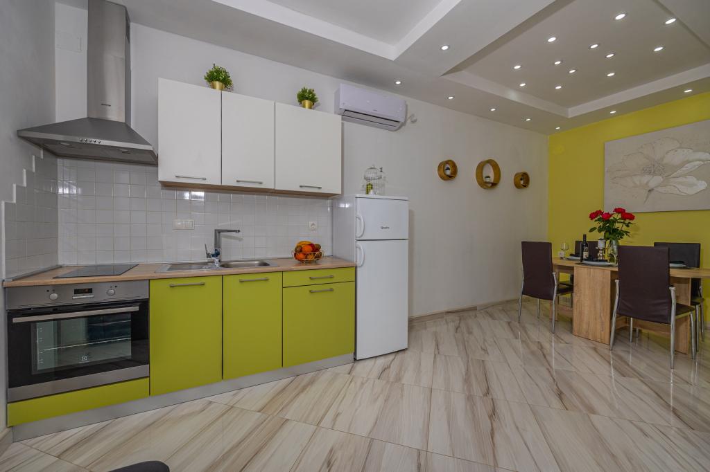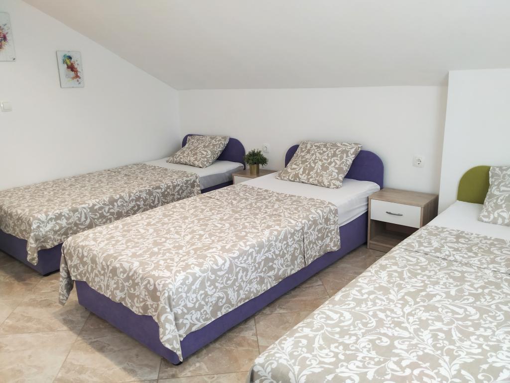 Familiehuset med lejligheder ligger i Dramalj, en rolig del af Crikvenica Riviera, kun 400 meter fra promenaden ved havet, der forbinder Dramalj med Crikvenica. Lejligheder A2 + 2 består af et udstyret køkken med spiseplads, badeværelse, 2 soveværelser, det ene med en dobbeltseng og det andet med en seng til 2 personer og en balkon med havudsigt. Lejligheder A3 består af et udstyret køkken med spiseplads, et badeværelse, 1 soveværelse med en dobbeltseng og en enkeltseng og en balkon med havudsigt. Lejlighed A5 består af et udstyret køkken med stue, 2 soveværelser, det ene med en dobbeltseng og det andet med 3 enkeltsenge. Lejligheden har en rummelig terrasse på 20m2 med direkte havudsigt. Alle lejligheder har aircondition, tv og wi-fi. Ved siden af huset er der en privat parkering for gæsterne og i haven en grill. .