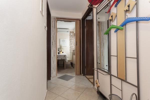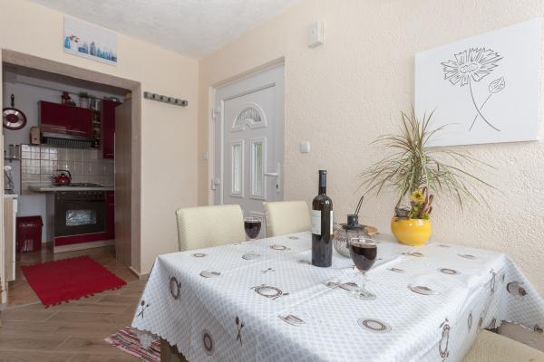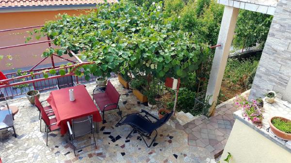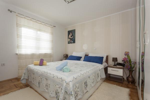 Lejligheden ligger i det rolige sted, og du har ca. 10-15 minutter at gå til havet. I lejligheden har du 2 gode indrettede værelser med dobbeltsenge og garderobeskabe. Du har også et badeværelse med stort brusebad, hårtørrer, spejl osv. I køkkenet var der mange redskaber, så du kan lave mad alt hvad du vil. Vi havde også et sted med et bord på terrassen med havudsigt. Værterne Jasnica og hendes mand var meget venlige og cooperativ. I huset bor også dejlig lille hund Maki. Så vi er virkelig taknemmelige for Jasnica for god indkvartering og nogle gode tips.