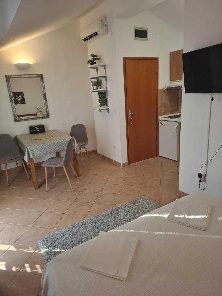 Rengøring fremragende, ejere er ualmindeligt godt, vi holdt i studiet + 1 familie med fire medlemmer. Alle anbefalinger til indkvartering, renlighed og ryddelighed på det øverste niveau, ejerne har til at ville, tæt ved havet, terrasse, aircondition, WiFi, grill, nye møbler .... rene 10-vævninger. Hilsner til familien Prlac, familie Begunić