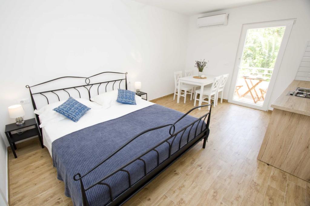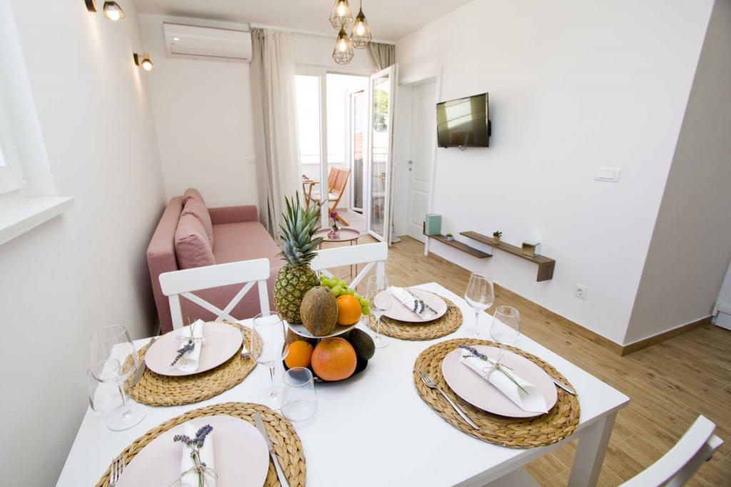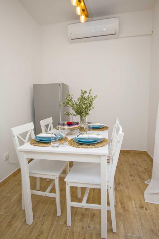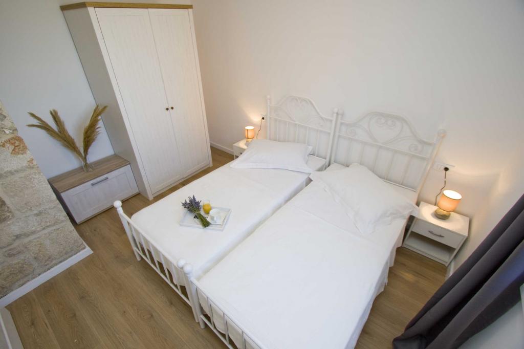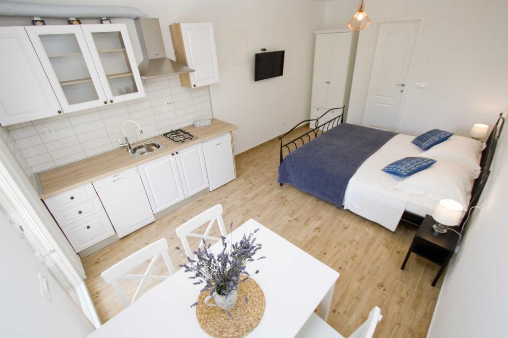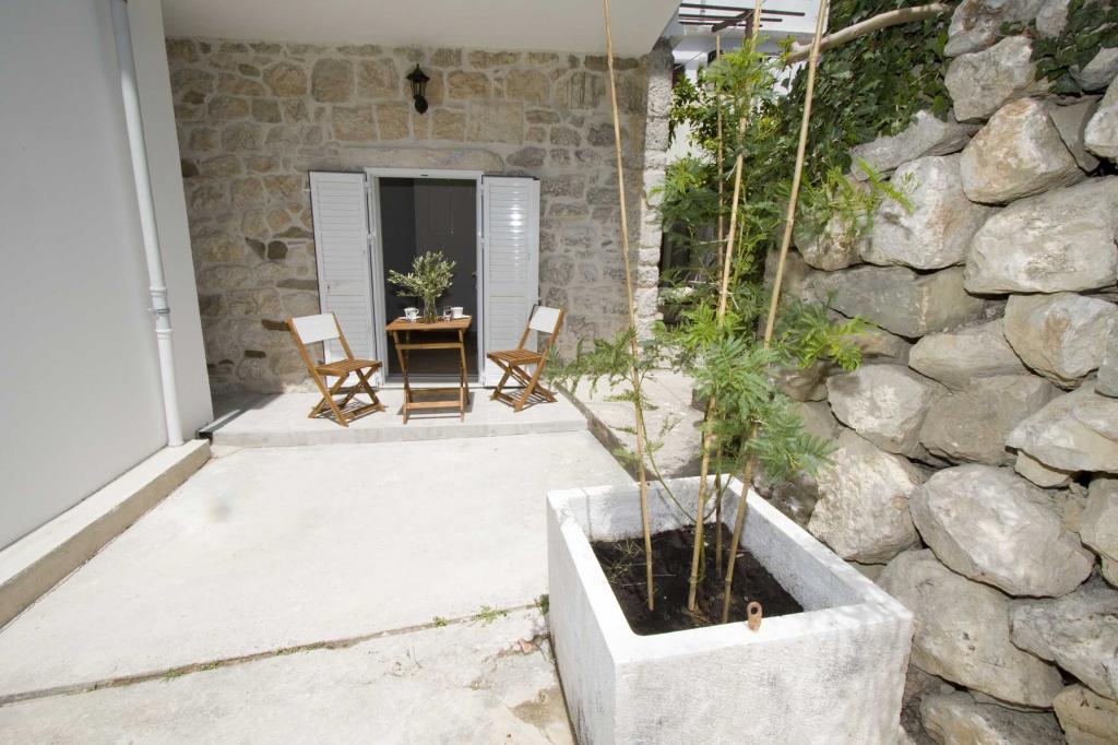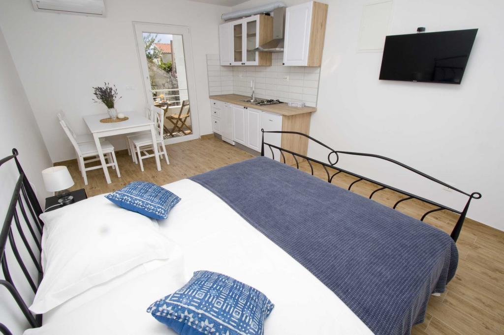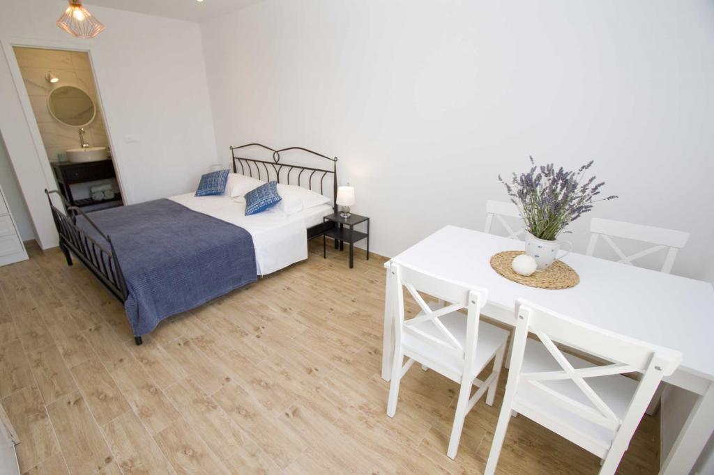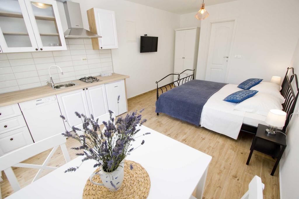 Lejligheder Rustica ligger 20 meter fra havet i en traditionel dalmatisk dam i den lille by Drasnice. De tilbyder overnatning til 11 personer i tre separate lejligheder, og det er muligt at leje hele huset. De indeholder 3 boligenheder - to lejligheder med havudsigt og en studiolejlighed. Hver af lejlighederne har en terrasse, og der er en terrasse øverst i huset med en smuk udsigt over havet og de nærliggende øer. Hver lejlighed har separat indgang, aircondition, udstyret med opvaskemaskine samt redskaber til brug og fladskærms-tv med satellitkanaler. Lejligheder Rustica ligger i nærheden af flere strande, 50 meter fra stranden Čevajele og 200 meter fra stranden Soline og 200 meter fra det nærmeste supermarked, restaurant og café. Lejligheder Rustica giver dig mulighed for en rolig og fredelig ferie i deres enheder dekoreret i overensstemmelse med det miljø, hvor de er beliggende.