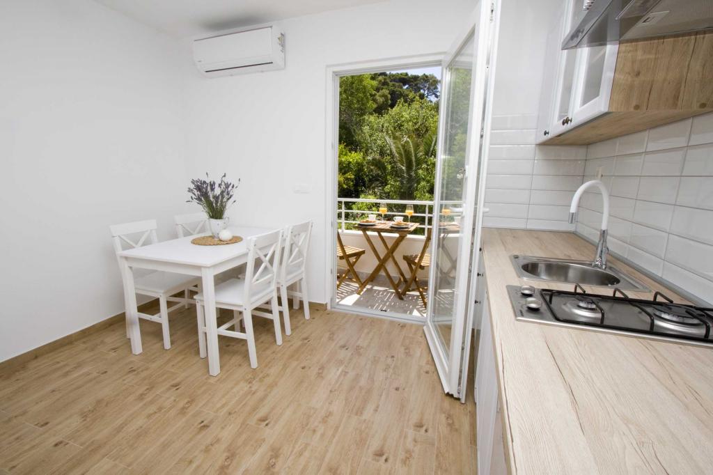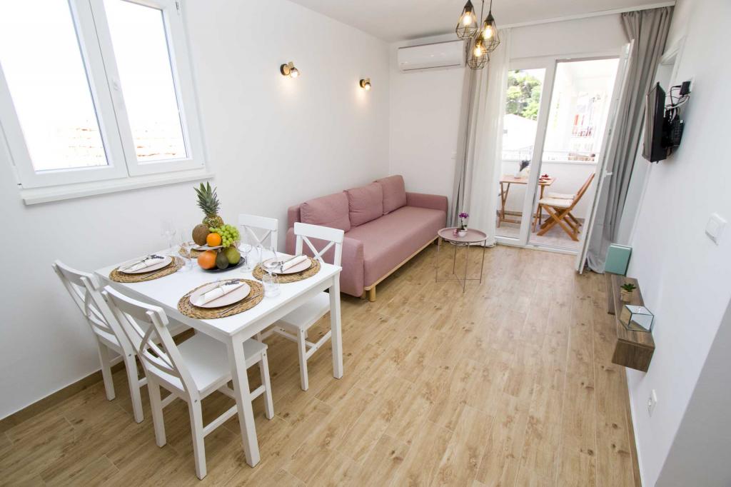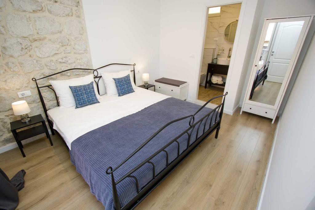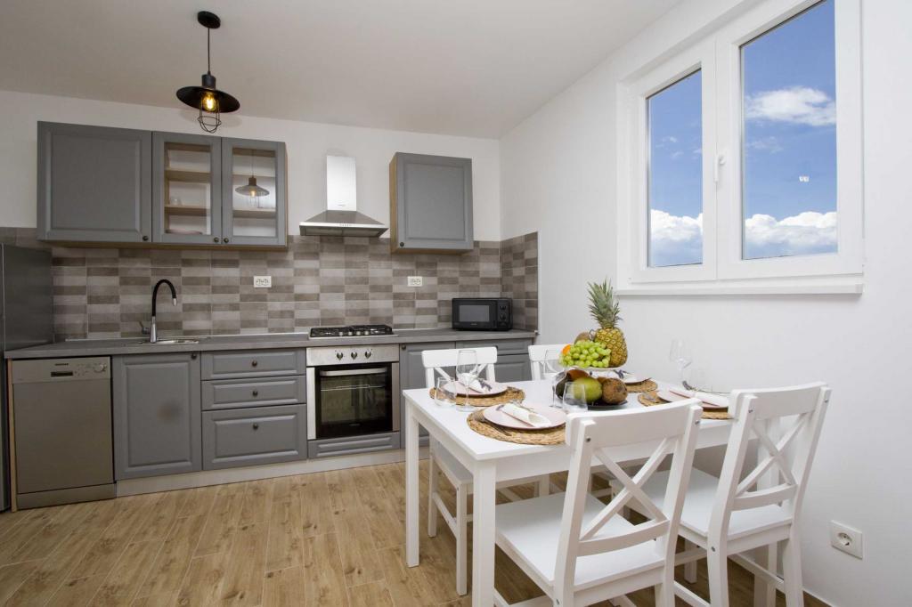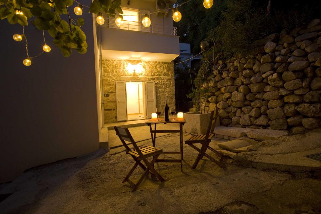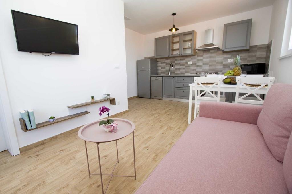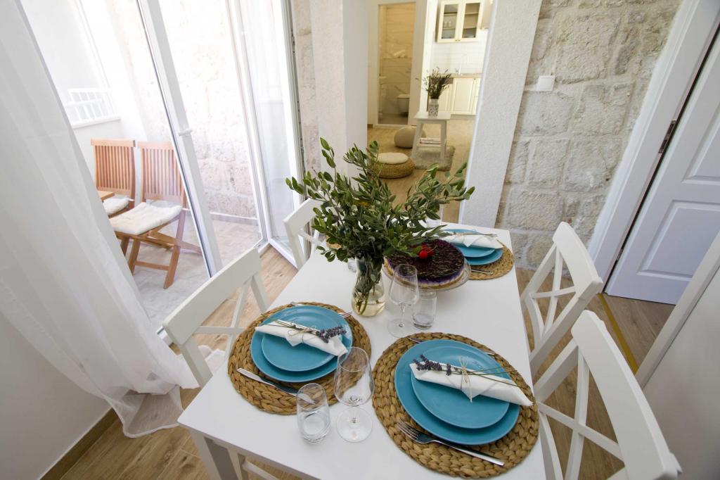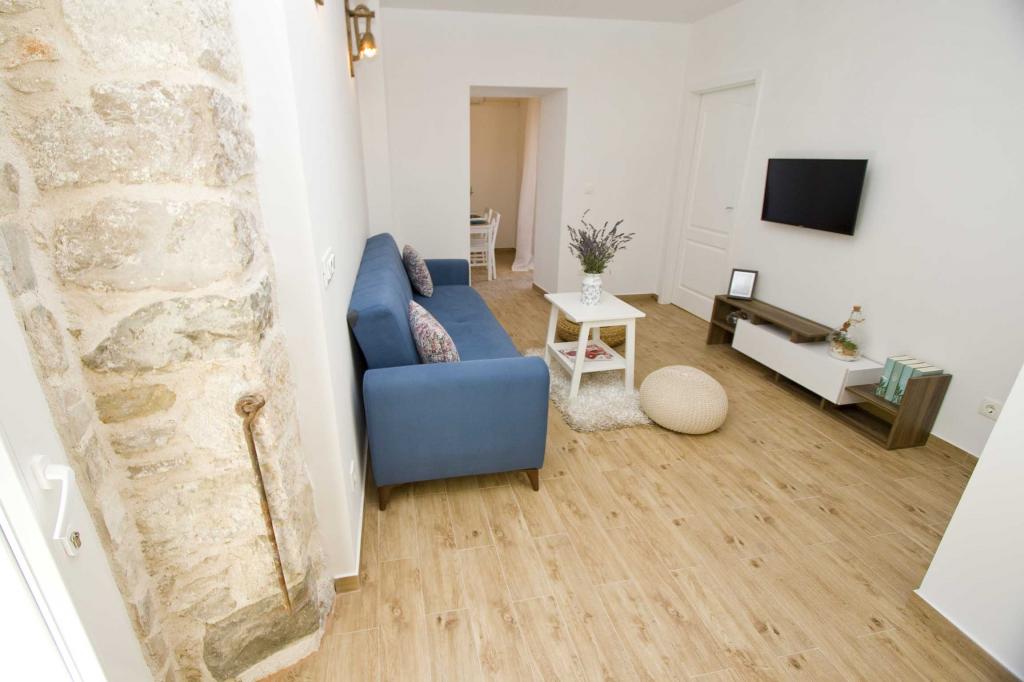 Lejligheder Rustica ligger 20 meter fra havet i en traditionel dalmatisk dam i den lille by Drasnice. De tilbyder overnatning til 11 personer i tre separate lejligheder, og det er muligt at leje hele huset. De indeholder 3 boligenheder - to lejligheder med havudsigt og en studiolejlighed. Hver af lejlighederne har en terrasse, og der er en terrasse øverst i huset med en smuk udsigt over havet og de nærliggende øer. Hver lejlighed har separat indgang, aircondition, udstyret med opvaskemaskine samt redskaber til brug og fladskærms-tv med satellitkanaler. Lejligheder Rustica ligger i nærheden af flere strande, 50 meter fra stranden Čevajele og 200 meter fra stranden Soline og 200 meter fra det nærmeste supermarked, restaurant og café. Lejligheder Rustica giver dig mulighed for en rolig og fredelig ferie i deres enheder dekoreret i overensstemmelse med det miljø, hvor de er beliggende.