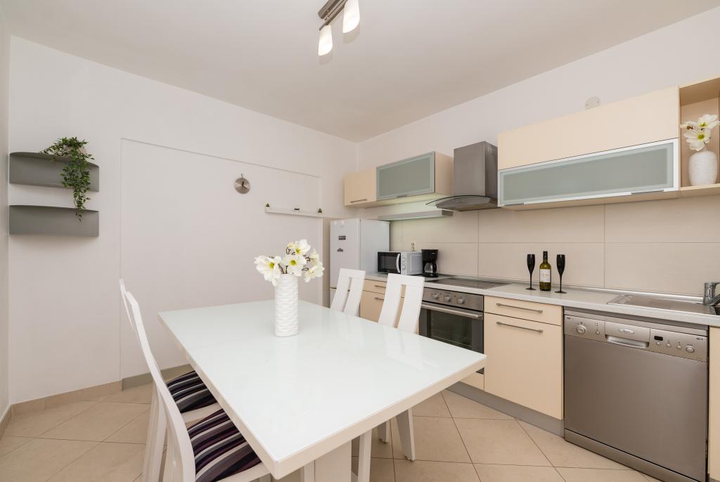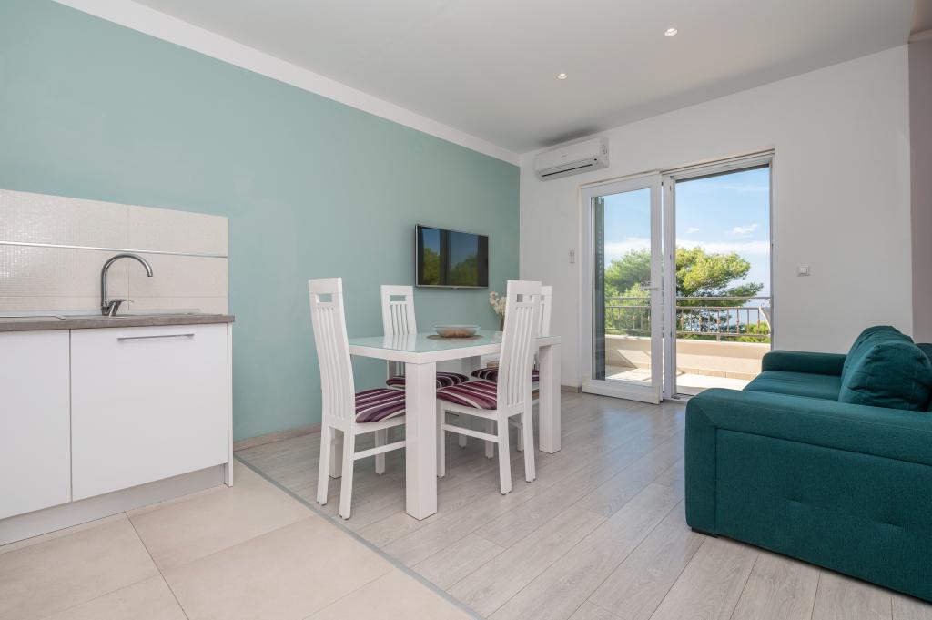 Drašnice, en lille turistby, ligger ti kilometer syd for Makarska, på vej til Dubrovnik, ideel til en familieferie. Huset ligger i rolige omgivelser, 150 m fra havet. Alle lejligheder har privat parkering, aircondition, TV, wi-fi, vaskemaskine, opvaskemaskine