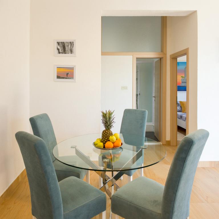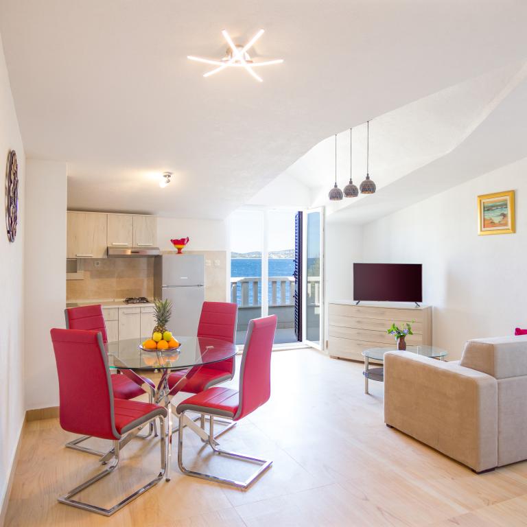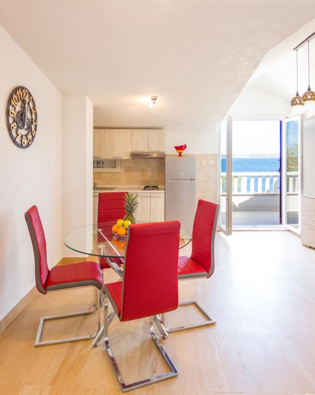 Lejlighederne Val og Sol ligger på øen Drvenik Mali, i Mala Rina-bugten, i første række til havet, 70 m fra kysten. Lejlighederne på øen Drvenik Mali består af et udstyret køkken, spisestue, opholdsstue med TV og sovesofa, soveværelse med ventilator, terrasse med smuk udsigt, badeværelse med hårtørrer. Begge lejligheder har havudsigt. Der er mulighed for at leje hele husets etage. Lejlighederne Val og Sol i Drvenik Mali tilbyder gratis parkering, grill og gratis internet. På øen Drvenik Mali er der en butik med begrænset indhold, en restaurant og en café på stranden. Derfor anbefaler vi kraftigt, at du medbringer mad, drikkevarer og andre fornødenheder.