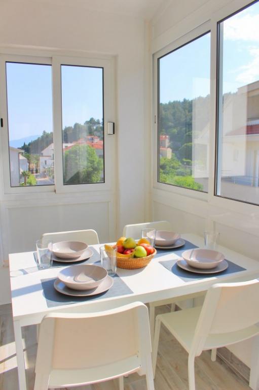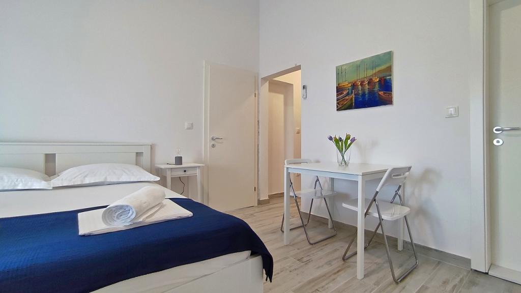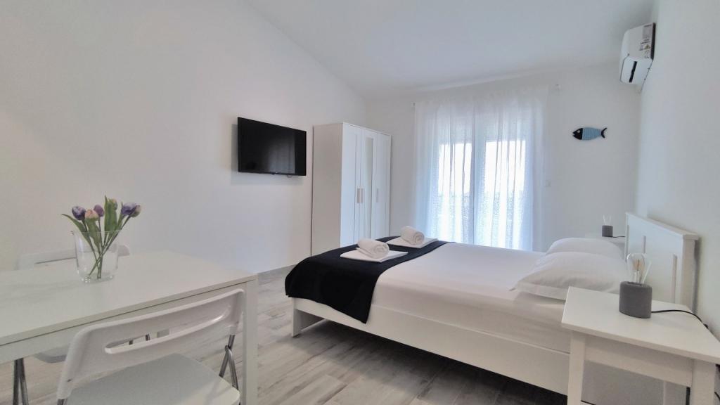 Anlægget ligger i Drveniks nedre bugt, kun 70 meter fra stranden. Huset er moderne udstyret, og hver boligenhed har et 4K LED-tv, aircondition, et fuldt udstyret køkken... Privat parkering er tilgængelig i huset. Sportsbaner og en børnepark ligger kun 20 meter fra huset. Ud over smukke strande kan du nyde de mange velholdte promenader, stier på Biokovo-bjerget, et fitnesscenter og andre faciliteter på dette fredelige og charmerende sted. Velkommen!