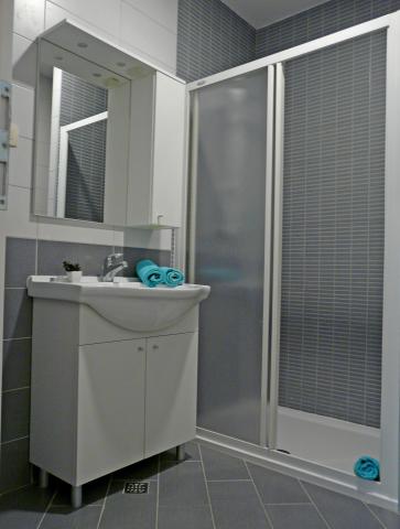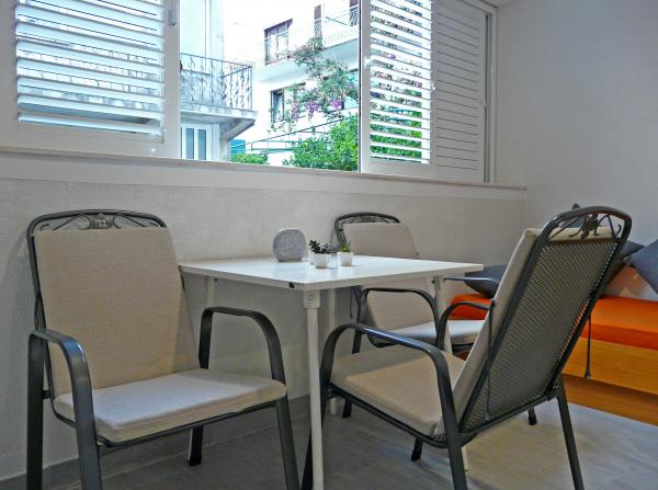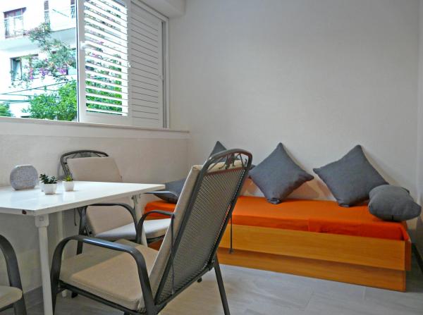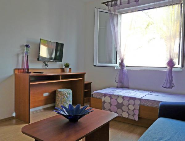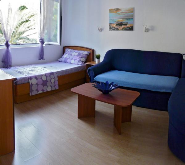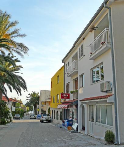 Familie hus med tre moderne lejligheder (2 lejligheder på anden sal med balkon med udsigt over havet og en stuelejlighed med egen indgang og parkering). Huset er en butik. Overfor huset er et værtshus-restaurant. Afstand fra havet, stranden og centrum er en 3 minutters gåtur. Gratis Wi-Fi. Alle lejligheder har aircondition uden ekstra beregning. Parkering er inkluderet i prisen. Velkommen :)