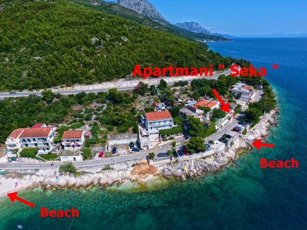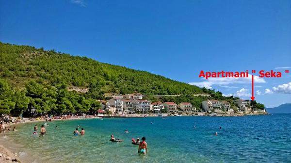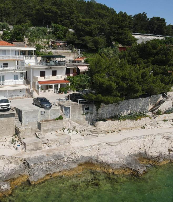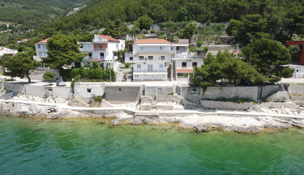 Lejlighederne er beliggende i et roligt område af Drvenik. Beliggende første række til havet. Parkering er placeret foran bygningen. Under bygningen er der en beton- og stenet kyst, og en stenstrand er 50 m væk. På 100 m er der restauranter, cafeer, bagerier, butikker, vekselkontor.