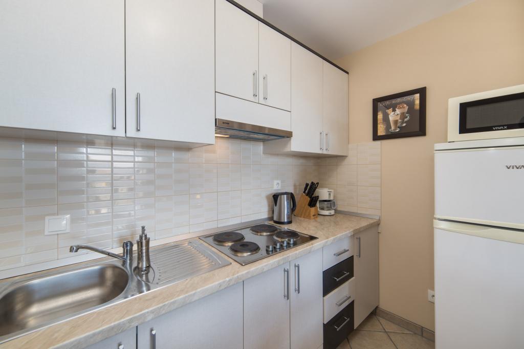 Boede i en lejlighed sidste sommer med to små børn, og vi var meget tilfredse. Lejligheden indeholder alt hvad du behøver for et behageligt ophold, alt er nyt og kvalitet, pæne og rene. Matchende beskrivelsen af annoncen. Værtinden var mere end behagelig, venlig, ikke påtrængende. Alle 5 !!! Lejligheden er meget tæt på stranden og centrum. Butikker er bogstaveligt talt et minut væk. Et ideelt sted for familier med børn. Men hvis du ikke kan lide skarer på stranden, undgå højsæsonen.