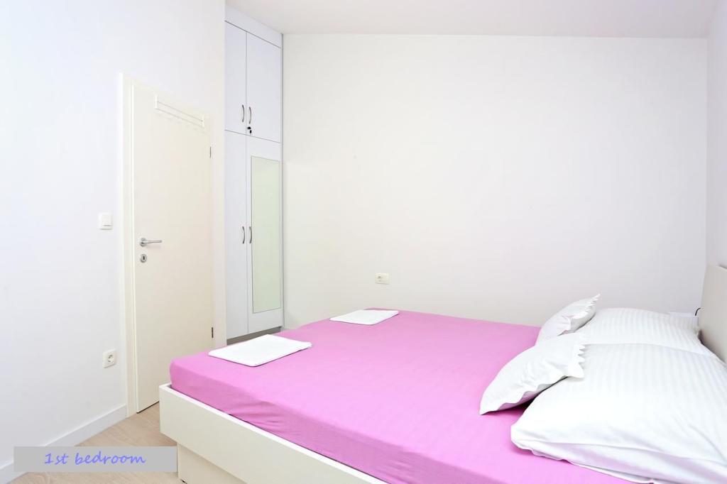 Anas sted var smukt. Ligesom billederne. Balkonudsigten er fantastisk! Det er lige ved vandet. Lige foran bygningen ligger bådhavnen, og på begge sider af den er der vidunderlige sandstrande med nærliggende caféer og is. Vi tilbragte de fleste dage lige udenfor lejligheden med vores 4 børn på stranden. Det var også dejligt at gå langs stranden om natten. Det kan blive temmelig blæsende, men var aldrig særlig koldt i august/september. Parkering var meget bekvemt placeret på stedet. Vi havde alt, hvad vi havde brug for. Alle 4 af vores børn var i stand til at sove på sofaen trukket ud. Den eneste ulempe er, at der ikke var nogen håndklæder og ingen vaskemaskine. Men det er en meget ny bygning, det ser ud som med mange ombyggede lejligheder, så forhåbentlig snart kan disse ting tilføjes. Værten svarede hurtigt på alle mine irriterende spørgsmål. Tak for et vidunderligt ophold i et smukt sted Gordana! Vi anbefaler stærkt dette sted og ville elske at komme tilbage hvert år!