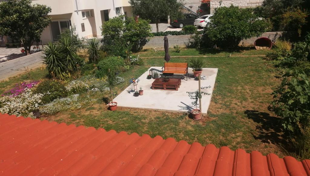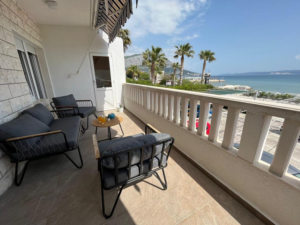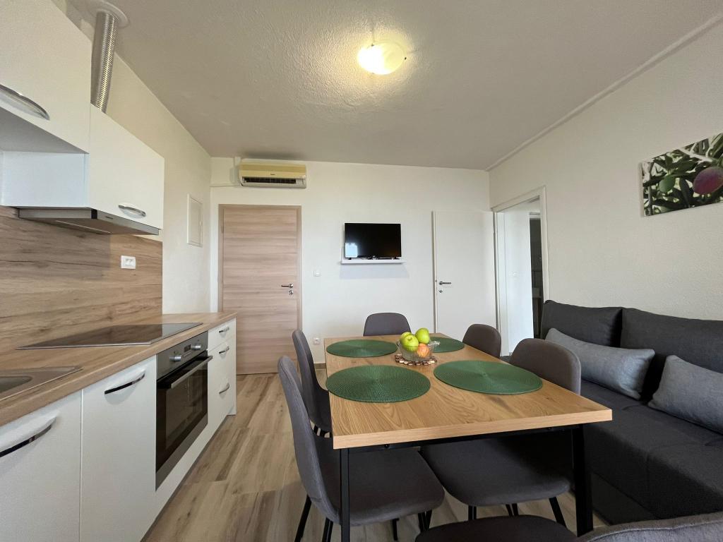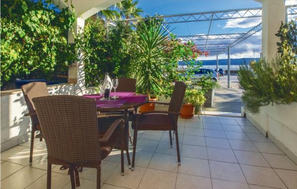 Meget dejlige og venlige værter, renoveret studie - med køkken, badeværelse og en smuk blomsterterrasse, der gør aftener og morgen morgenmad behagelige. Lejlighedsudstyret er nyt og funktionelt. Fra terrassen er der en direkte udgang til strande, ca. 20 m. Der er en butik og flere restauranter i nærheden. Parkering under huset. Roligt kvarter, 30 minutter til centrum af Omis til fods. Vi er meget glade for at bo på dette sted