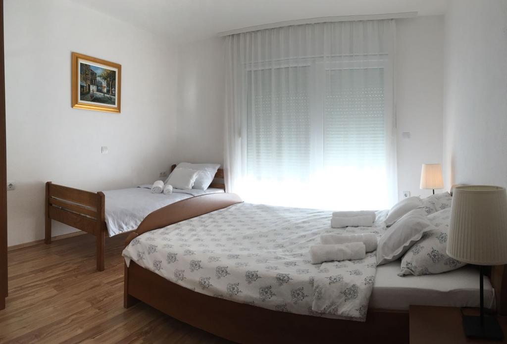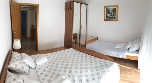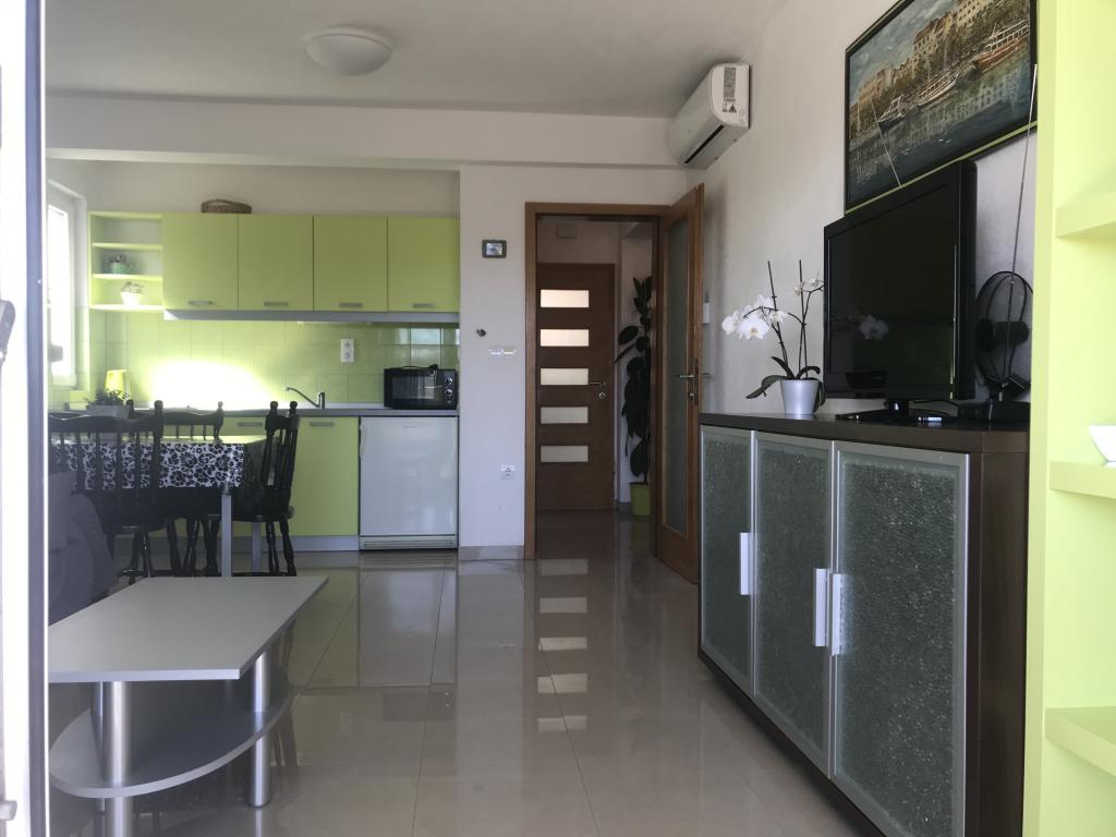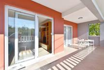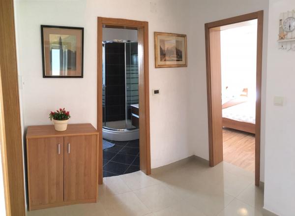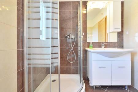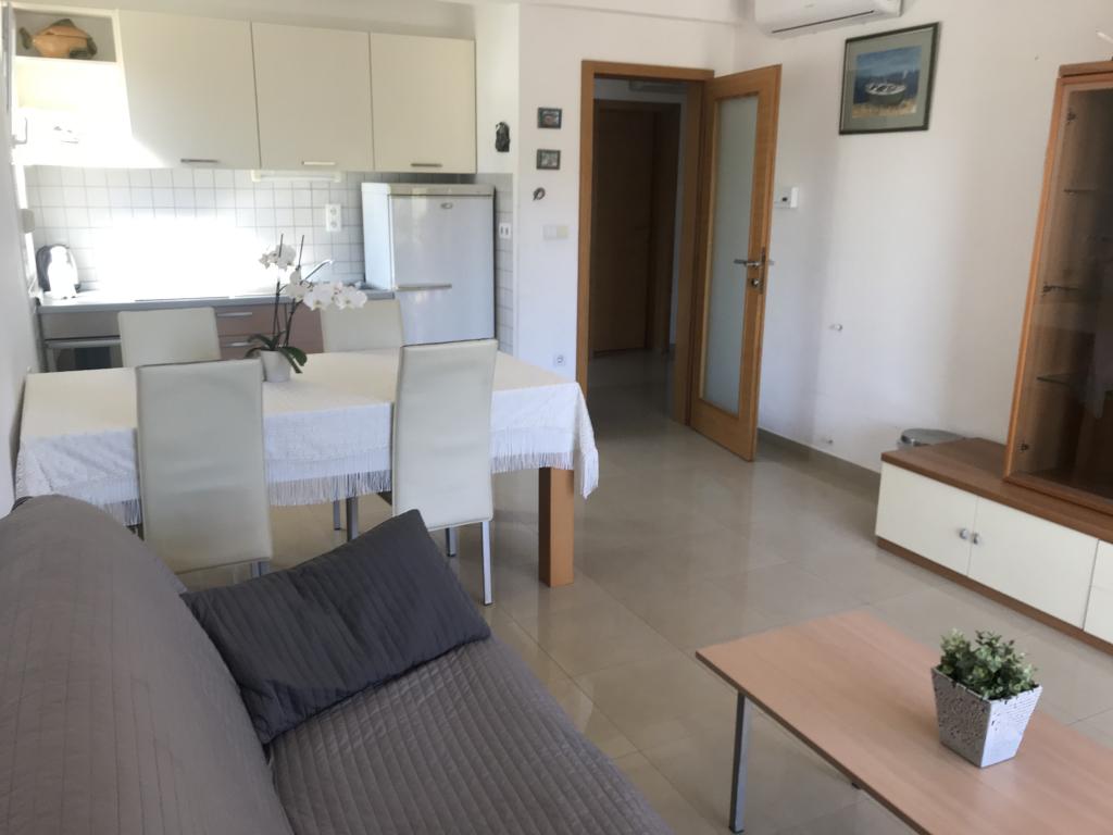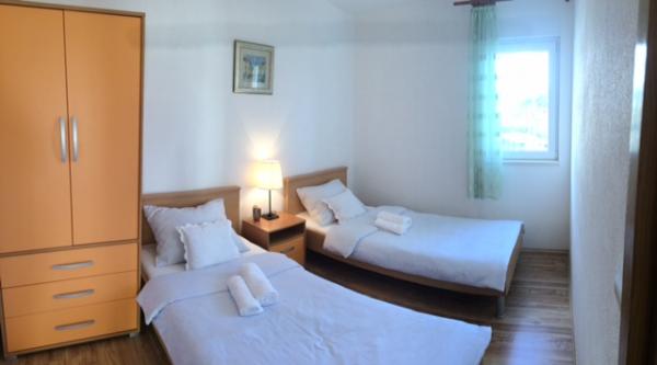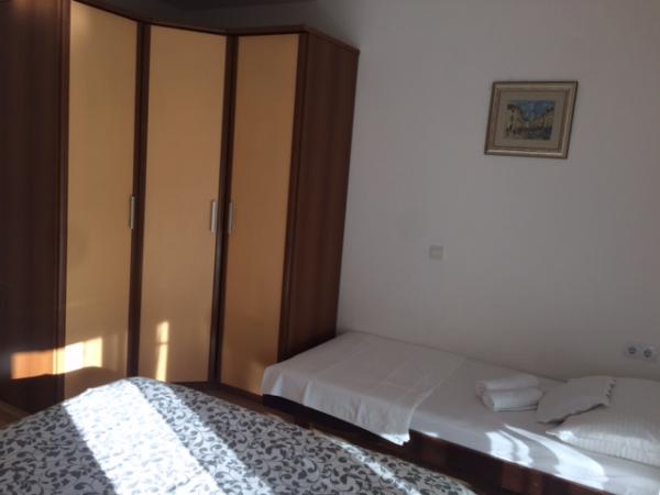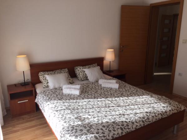 Huset har to lejligheder på 75 kvadratmeter. Hver lejlighed har to soveværelser, et værelse har to senge og de andre tre senge. I det rummelige køkken med stue er der mulighed for overnatning for to personer på sofaen. På gangen er der badeværelse med toilet og toilet. Begge lejligheder har en rummelig balkon med udsigt over havet. Der er garager i stueetagen. Det er nødvendigt at krydse vejen for at nå stranden, som ligger 150 meter fra huset. På kort afstand er der valg mellem flere typer strande og havets dybde. Velegnet til børn. På stranden kan du udover svømning og solbadning vælge mellem en række andre former for underholdning. Afstanden til brødkiosken er 50 meter, butikker 200 meter, og i nærheden er der flere typer restauranter.