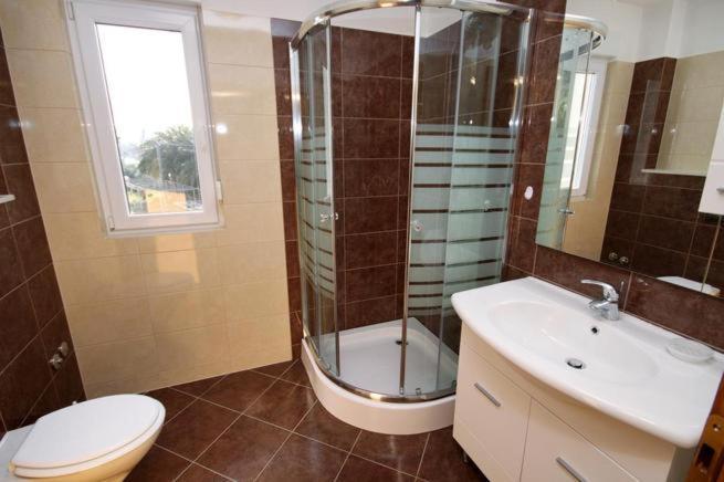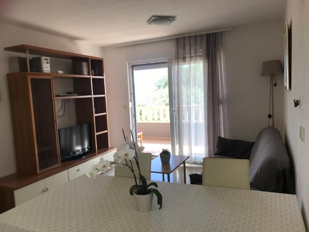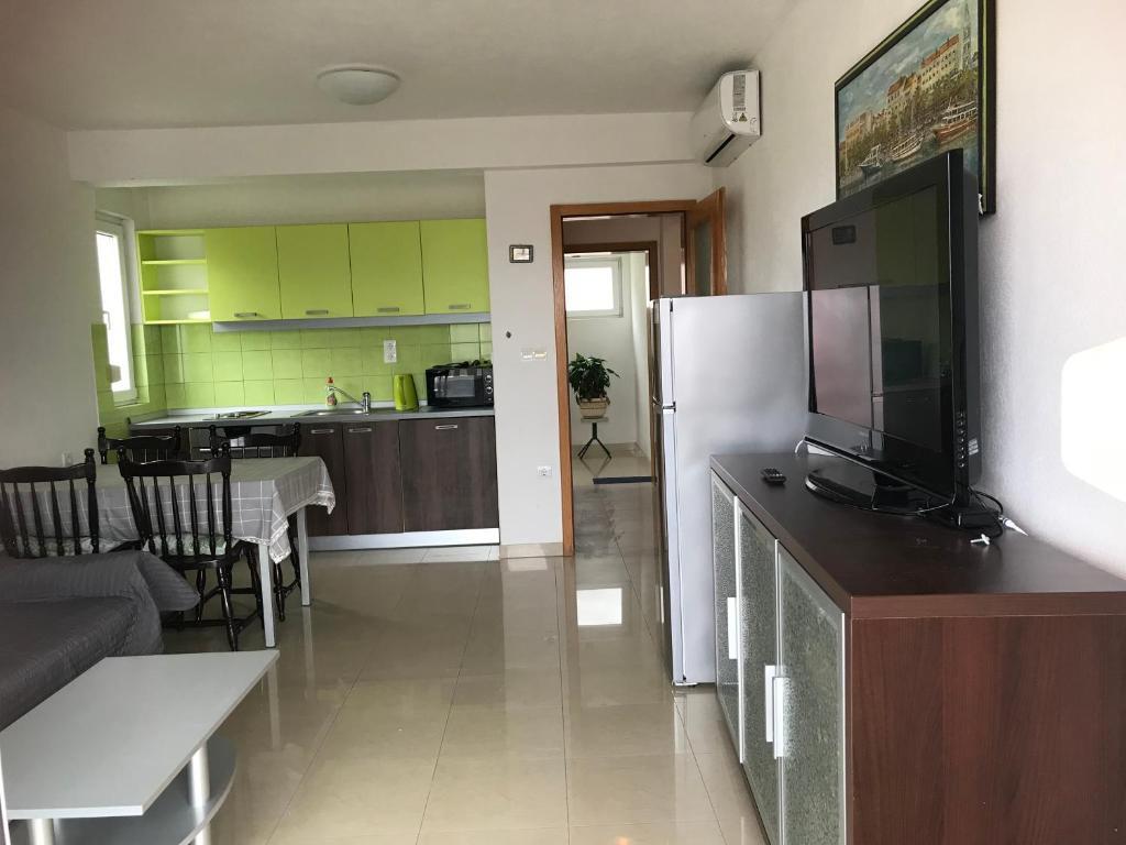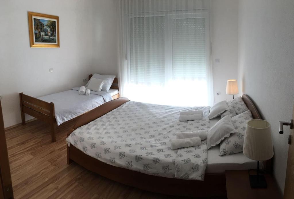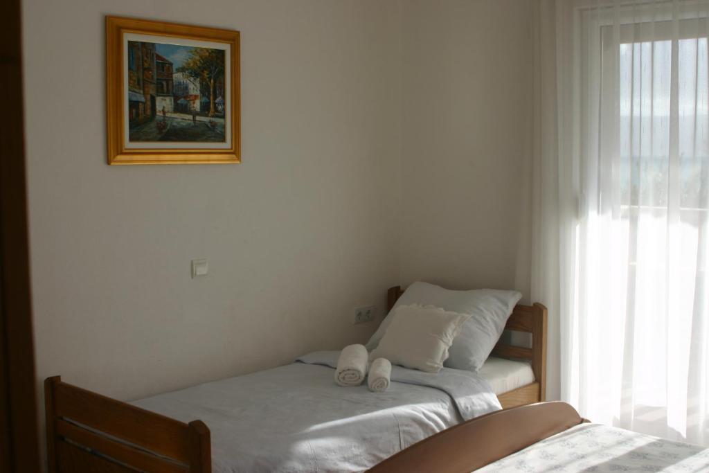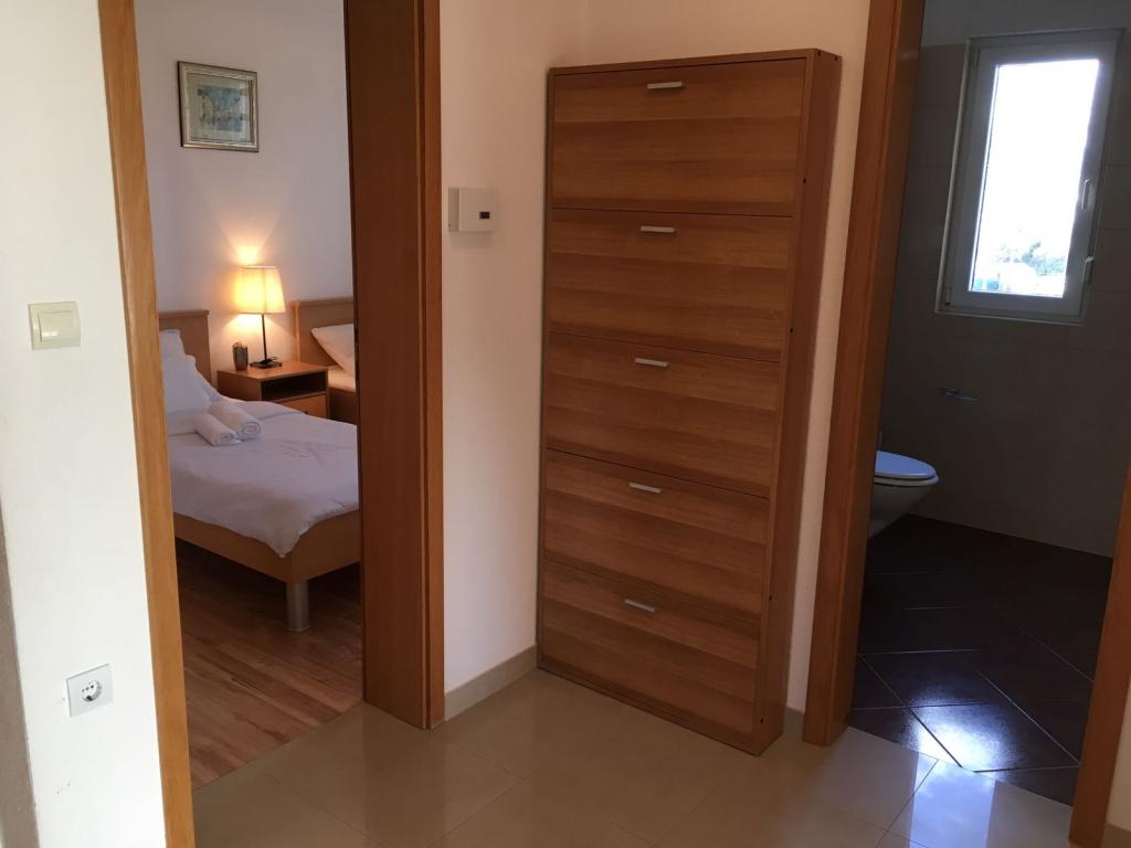 Huset har to lejligheder på 75 kvadratmeter. Hver lejlighed har to soveværelser, et værelse har to senge og de andre tre senge. I det rummelige køkken med stue er der mulighed for overnatning for to personer på sofaen. På gangen er der badeværelse med toilet og toilet. Begge lejligheder har en rummelig balkon med udsigt over havet. Der er garager i stueetagen. Det er nødvendigt at krydse vejen for at nå stranden, som ligger 150 meter fra huset. På kort afstand er der valg mellem flere typer strande og havets dybde. Velegnet til børn. På stranden kan du udover svømning og solbadning vælge mellem en række andre former for underholdning. Afstanden til brødkiosken er 50 meter, butikker 200 meter, og i nærheden er der flere typer restauranter.